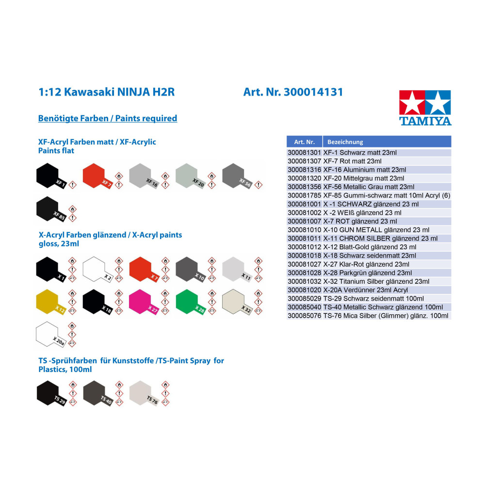 Farby potrebné pre dokončenie Tamiya Kawasaki Ninja H2R 1:12
