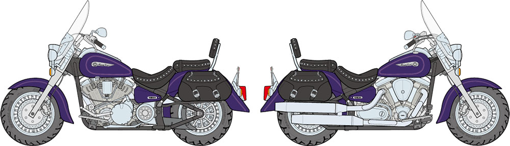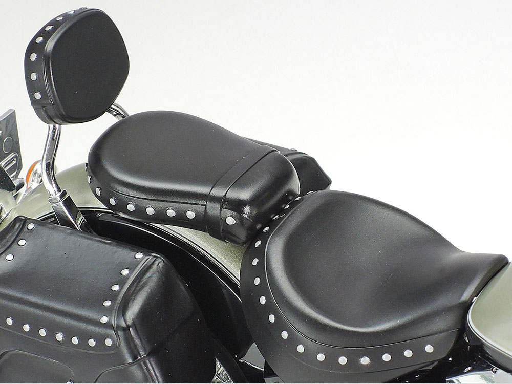 | Žasnite nad vyobrazeniami bočných tašiek, ktoré sú tu zobrazené zblízka. Takmer vyzerajú ako diely z pravej kože! | Motor V-twin je skutočnou úžasný a jednotlivé chladiace rebrá prispievajú k vysokej celkovej úrovni detailov. | Veľa pokovovaných častí (chrómových aj matných) a ďalšie funkcie, ako napríklad vinylové rúrky, zabezpečia, že váš výtvor skutočne zaujme. |