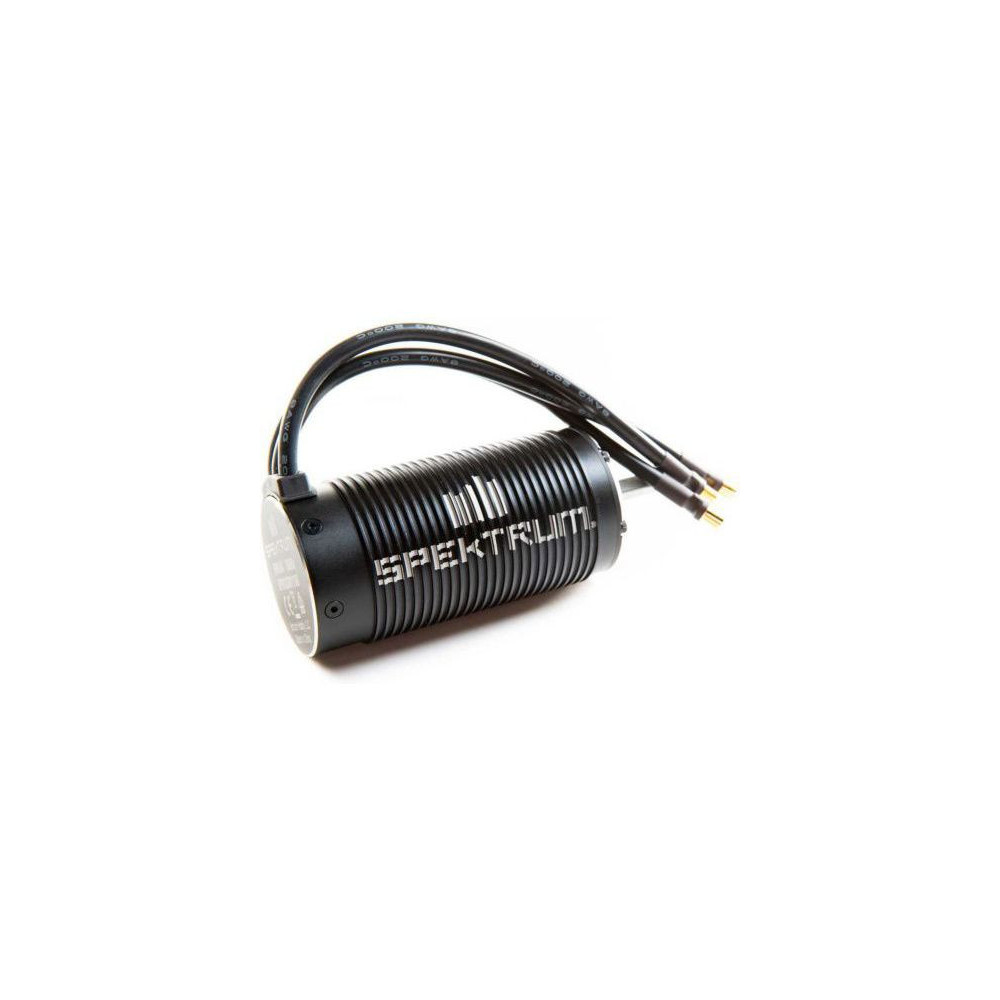 Spectrum kefe nélküli 4P motor Company 2050ot/V RC autó modellekhez 1:8, a test alumíniumból készült, bordázott, 5mm-es ötvözött acél kimeneti tengely és precíziós csapágyak. Kábelek 4mm-es aranyozott csapokkal.