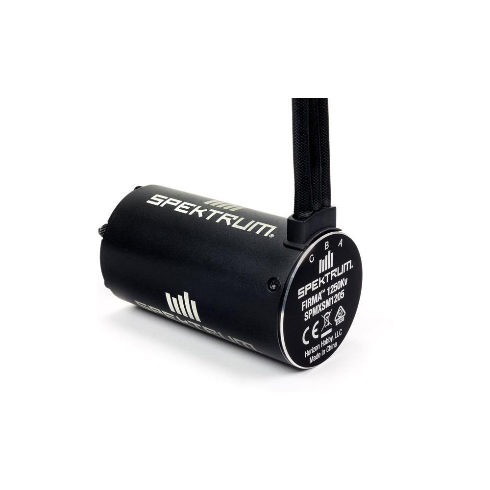 A Spektrum Firma 1250ot/V kefe nélküli motor 1:7, 1:6 méretarányú RC autómodellekhez készült, max. 8S LiPol tápegységgel. 4 pólusú rotor kialakítás 8 mágnessel, alumíniumból készült test, 8 mm-es ötvözött acél kimeneti tengely és precíziós csapágyak. Kábelek 6,5 mm-es aranyozott csapokkal.