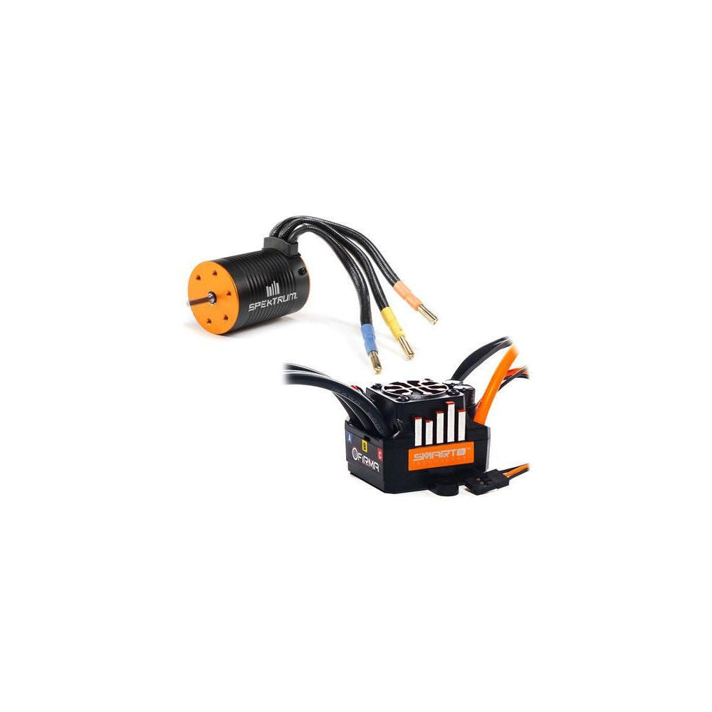 Combo RC modell meghajtáshoz - 1:10 méretarányú Drag és Speed Run modellekkel való használatra tervezve 2S LiPo tápegységgel. Spectrum Firm 6500ot/V kefe nélküli motor és 100A Smart vezérlő. Motor: ø36 x 52 mm, tengely ø3.175 mm. A vezérlő súlya 139g, méretei 34x39x43mm. IC5 csatlakozók.