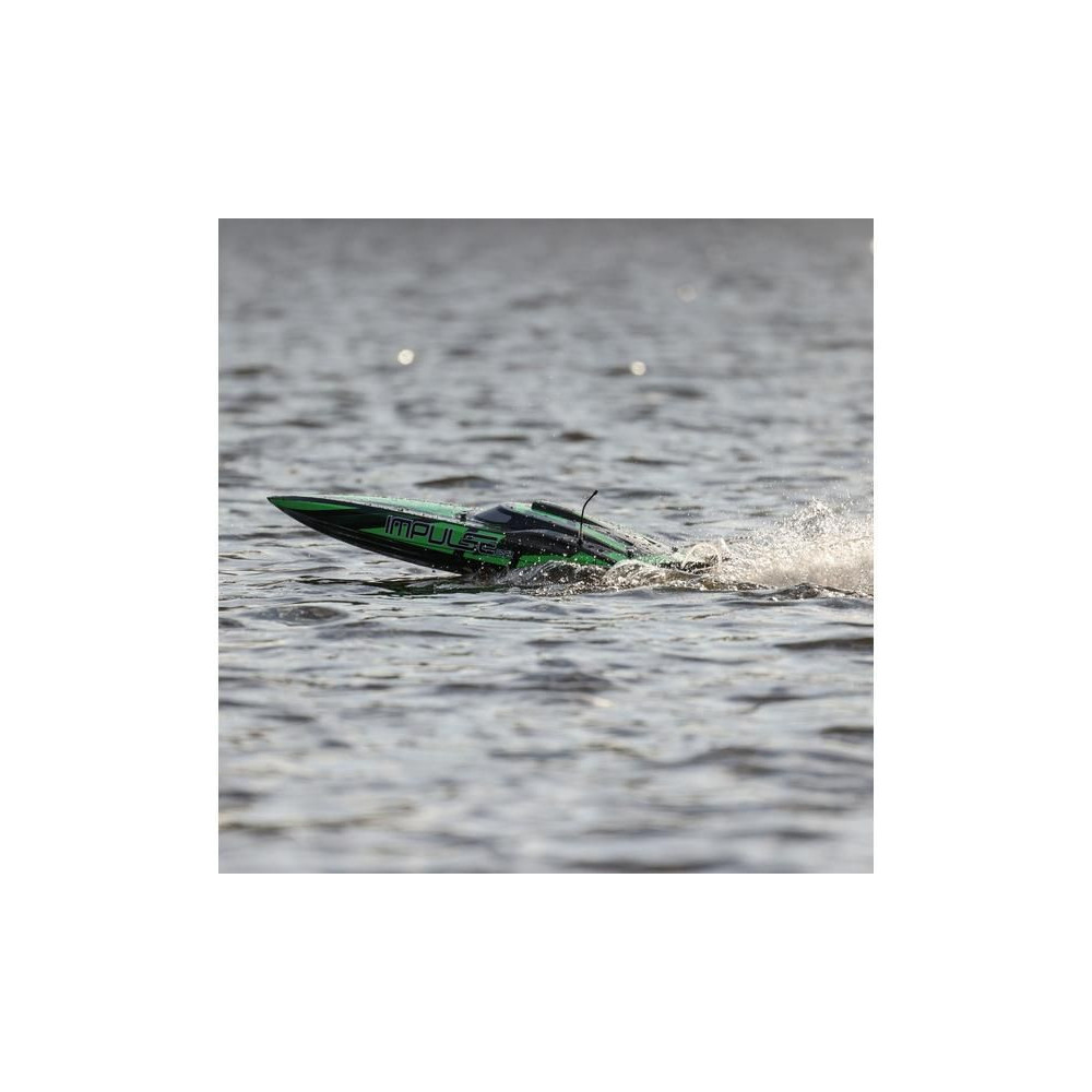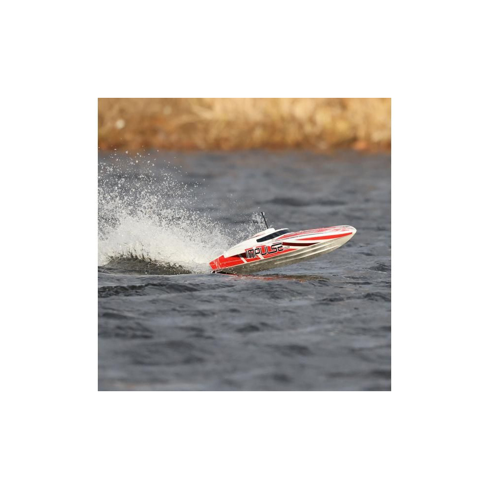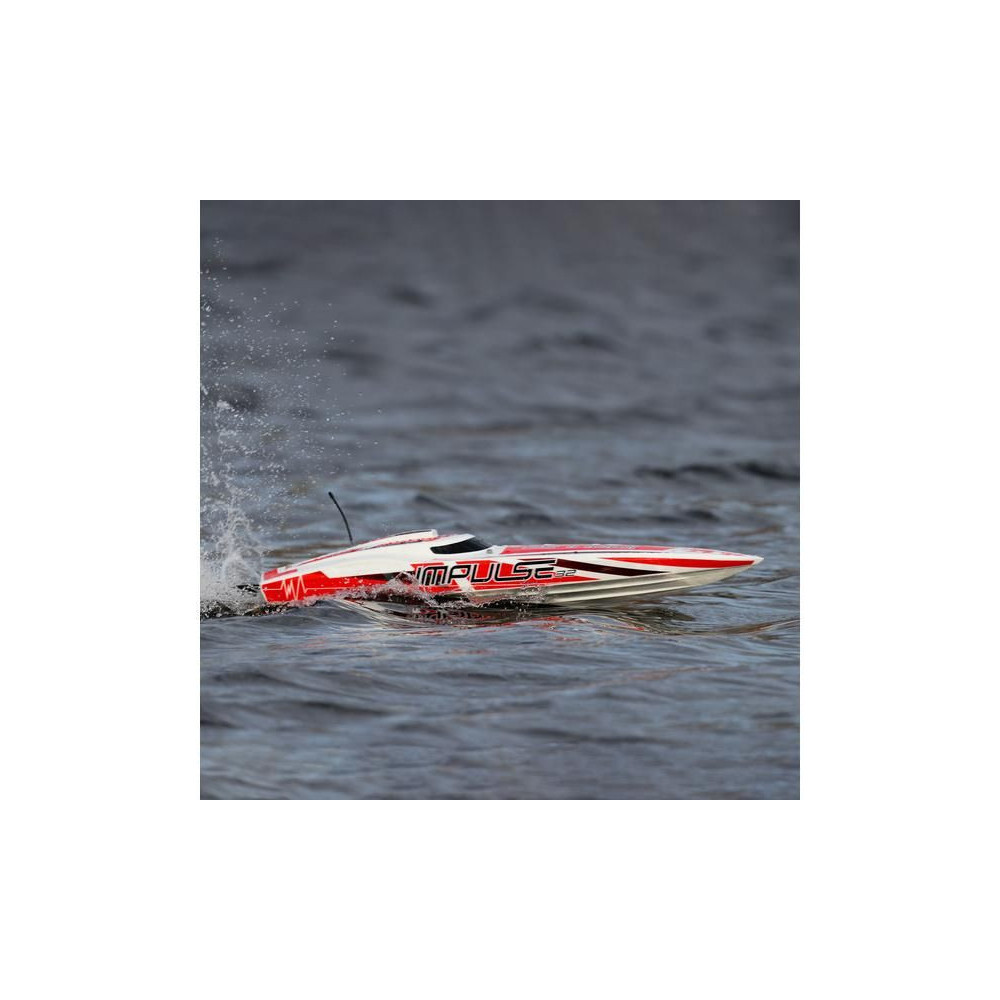 A Deep-V hajótesttel rendelkező Impulse 32 motorcsónak maximális teljesítményt és minőséget képvisel. Versenyképes üvegszálas hajótestet és nagy teljesítményű erőforrást kombinál. Nem fog tudni betelni az extrém, akár 88 km/h-s sebességgel. A nagy teljesítményű Spektrum™ 1900 KV vízhűtéses motor a Smart Spektrum Firma™ 160A vízhűtéses vezérlővel együtt akár 3 LE leadására is képes, és akár 88km/órás sebességet is elér! A Deep-V versenyzésre tervezett üvegszálas hajótestnek köszönhetően tökéletesen tapad a vízhez. Az állítható trimmlapok stabilizálják a hajót hihetetlenül nagy sebességnél. Mindezt úgy, hogy közben még a legdurvább vízi körülmények között is precíz kezelhetőséget biztosít.
