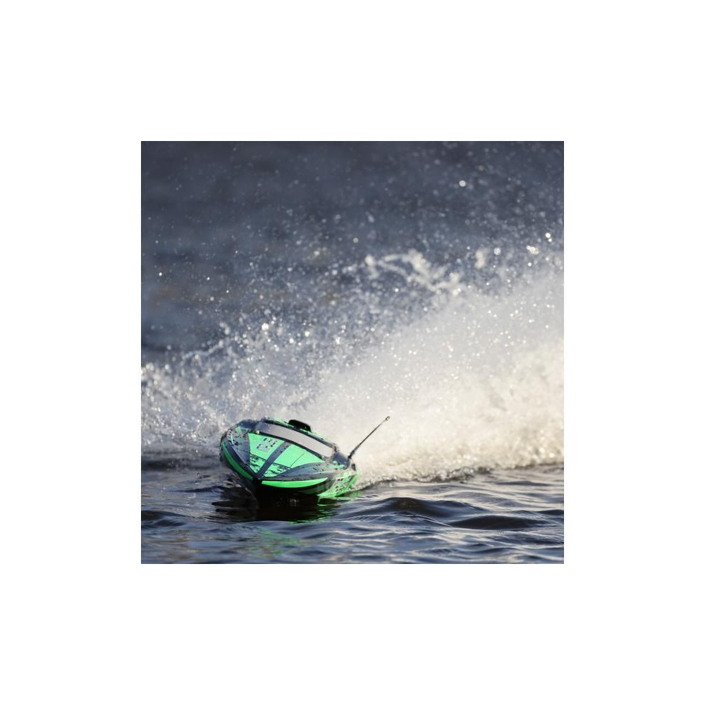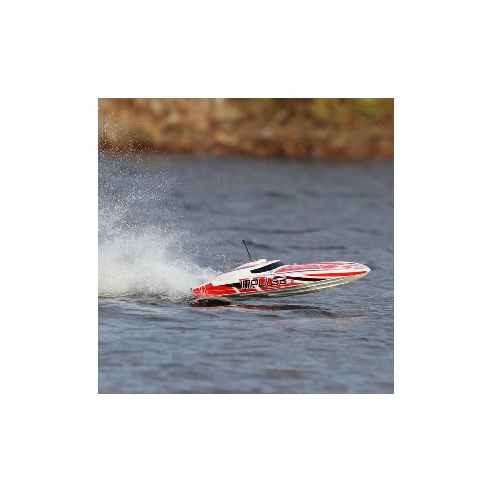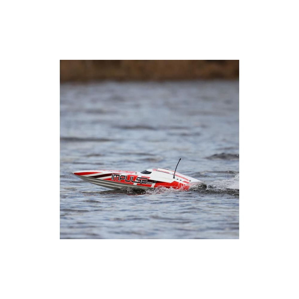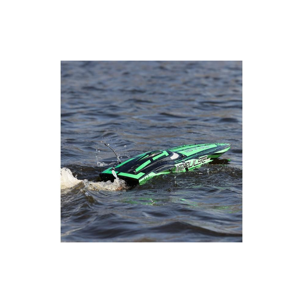 A Deep-V hajótesttel rendelkező Impulse 32 motorcsónak maximális teljesítményt és minőséget képvisel. Versenyképes üvegszálas hajótestet és nagy teljesítményű erőforrást kombinál. Nem fog tudni betelni az extrém, akár 88 km/h-s sebességgel. A nagy teljesítményű Spektrum™ 1900 KV vízhűtéses motor a Smart Spektrum Firma™ 160A vízhűtéses vezérlővel együtt akár 3 LE leadására is képes, és akár 88km/órás sebességet is elér! A Deep-V versenyzésre tervezett üvegszálas hajótestnek köszönhetően tökéletesen tapad a vízhez. Az állítható trimmlapok stabilizálják a hajót hihetetlenül nagy sebességnél. Mindezt úgy, hogy közben még a legdurvább vízi körülmények között is precíz kezelhetőséget biztosít.