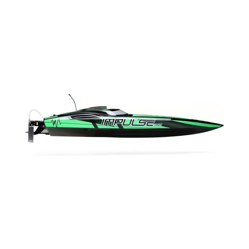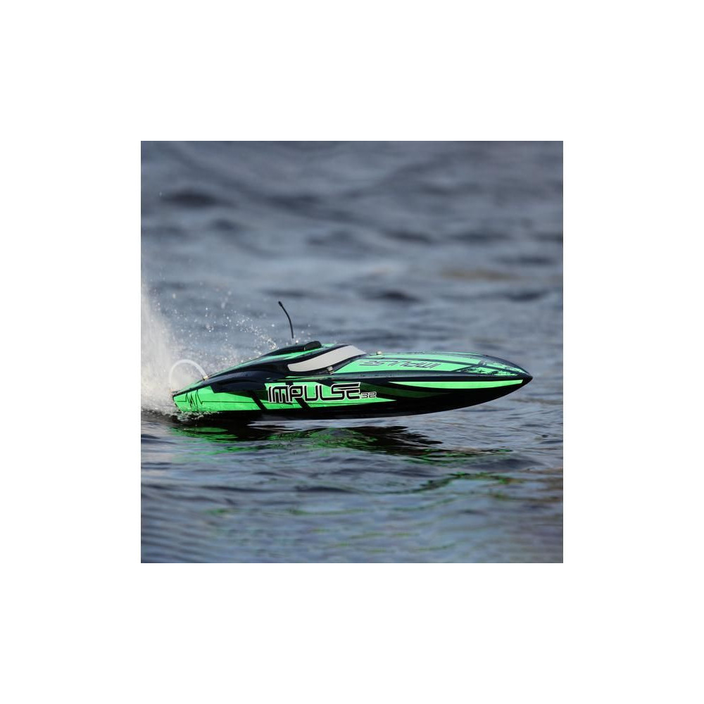 Az Impulse 32 meghajtásáról egy pár LiPol 2S-3S akkumulátor gondoskodik, amelyek sorba vannak kötve egy vízhűtéses vezérlőhöz. A Spektrum DX3 adó és a vízálló* SR315 3 csatornás vevő kettős protokollú telemetriával mindent keményen bekötve tart a problémamentes működés és az integrált telemetria érdekében. A Smart technológiának köszönhetően a csomagban található Spektrum DX3 adó jelzőn láthatja az akkumulátor feszültségének állapotát. De többet is kaphat, ha telemetriával ellátott adót használ, mint például a DX5, akkor további adatokat, például a vezérlő hőmérsékletét, áramát és a motor sebességét valós időben (akár a Blue Tooth modul és a műszerfal segítségével). Az Impulse 32 többrétegű üvegszálas hajótesttel és burkolattal is rendelkezik, alumínium zárakkal, tartós kompozit belső szerkezettel, alumínium kormánylapáttal és rozsdamentes acél légcsavarral. A legújabb technológiai vívmányok és a nagy teljesítményű motor minden utat élménnyé tesznek.