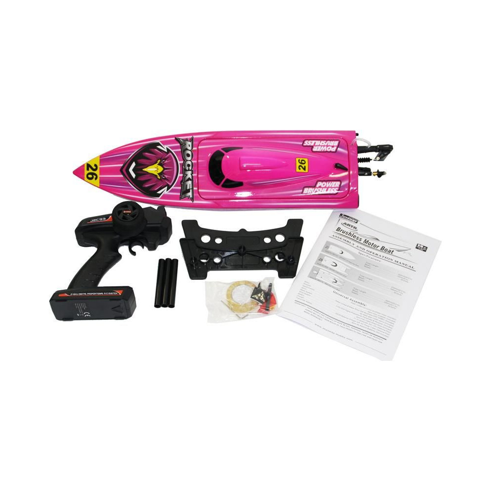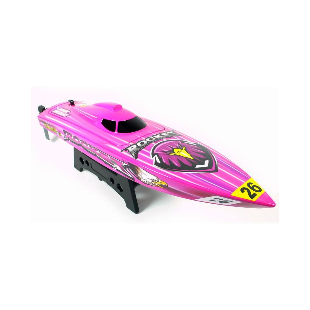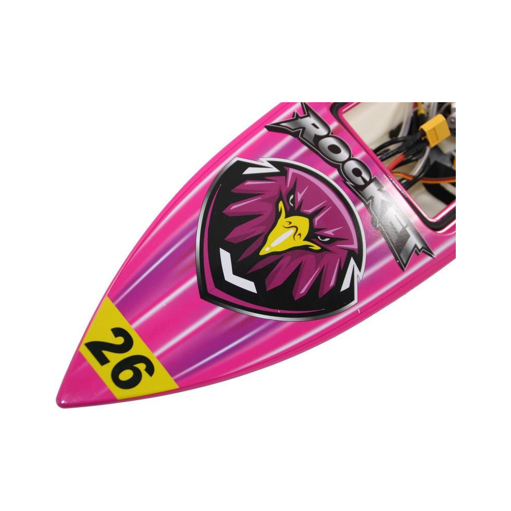 Sebesség RC modell távirányítós csónak Rocket Brushless V2 2.4GHz RTR. Több mint 60cm hosszú, vízhűtéses brushless motor és 30A vezérlő. Joysway 2,4GHz FHSS RC készlet vevővel. Vonzó színezés, műanyag hajótest, LiPol 2S-3S 2200mAh 2200mAh ajánlott.