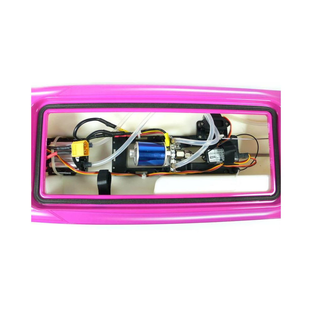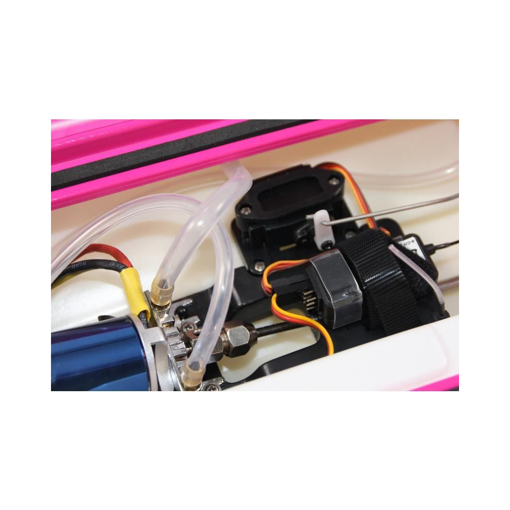 Az összes elektronikai alkatrész a hajótestbe van beépítve. A középső részen egy motor, egy vezérlő és egy vevő, a jobb oldalon pedig egy kormányszervó található.