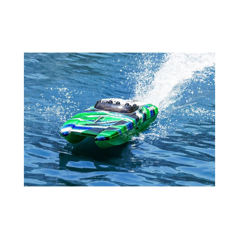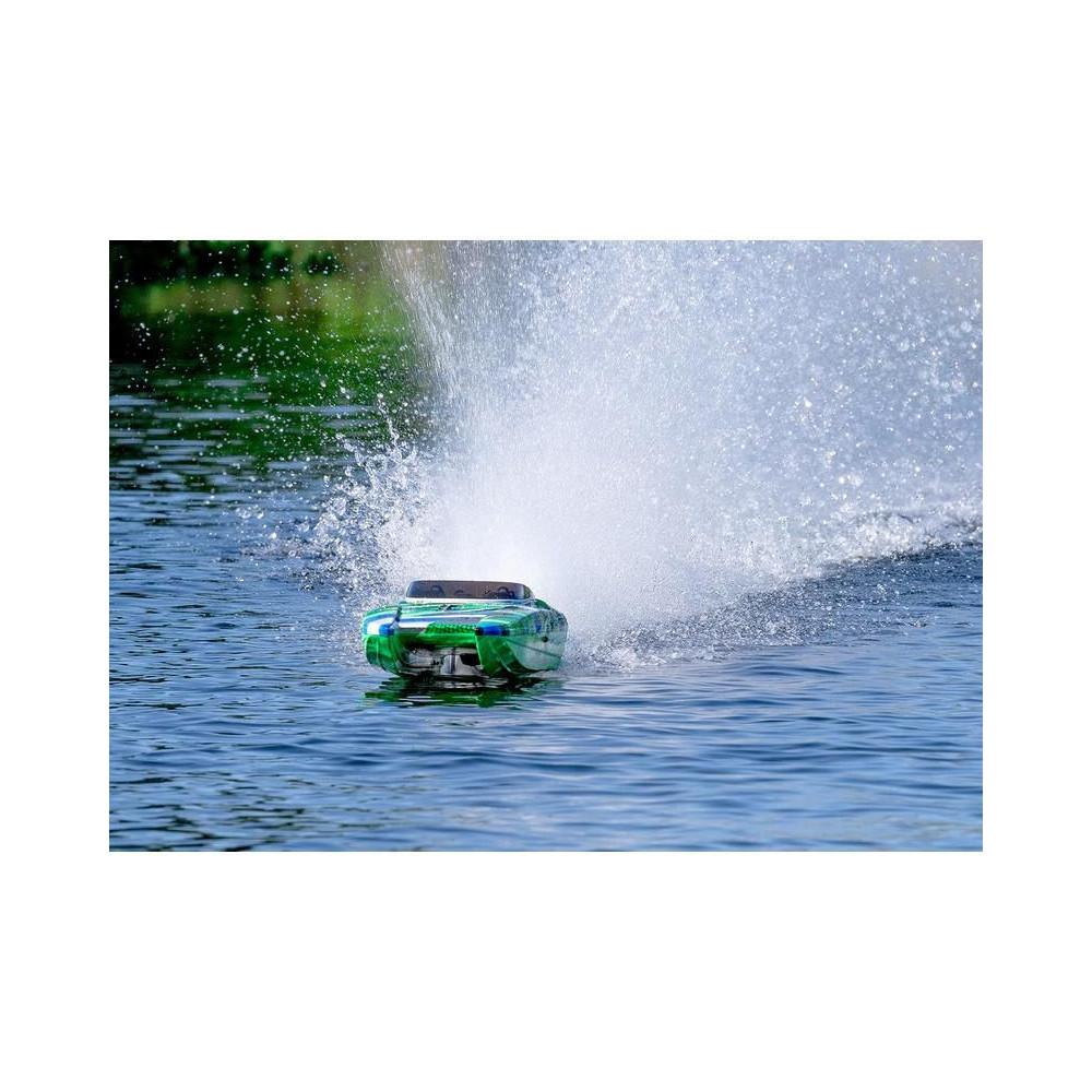 A szemet gyönyörködtető grafika teszi ezt a távirányítású hajót igazi gyöngyszemmé a hullámokon. Az egyedi téma a hajó kiváló láthatóságát is biztosítja minden körülmények között.