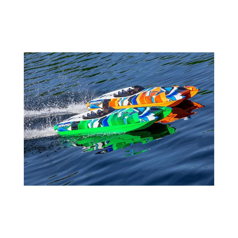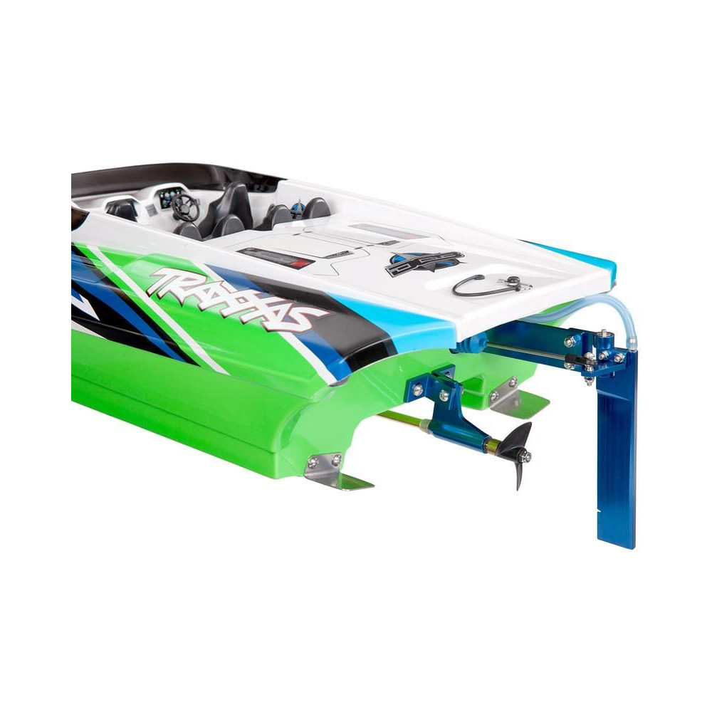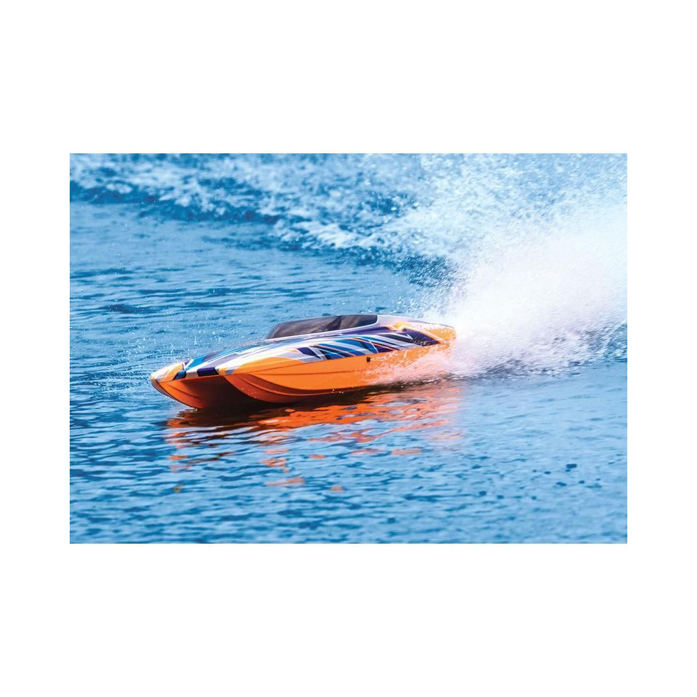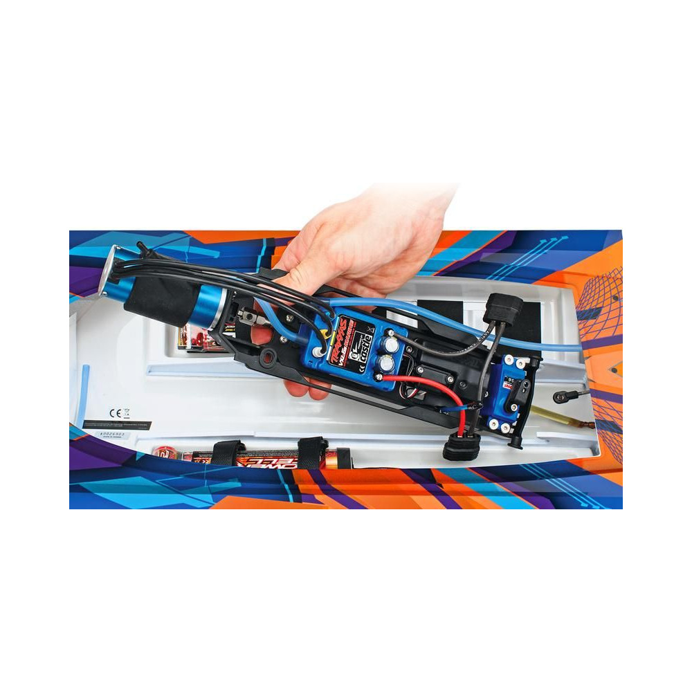 ADave's Custom Boats által gyártott valódi DCB M41 versenyhajó több mint 250 km/h sebességet ér el, és akár 1550 lóerős benzinmotor hajtja. A Traxxas készített neked egy távirányítható hajómodellt, ami nem fog csalódást okozni. A hajótest hossza 105 cm, természetesen van Traxxas TSM stabilizátor, Traxxas TQi RC kit és bevált hajtás. A beüzemeléshez mindössze a meghajtó akkumulátorokra és egy töltőre van szükséged.