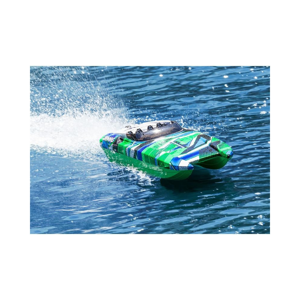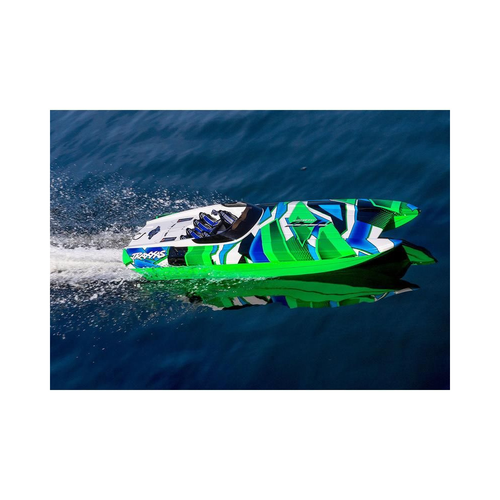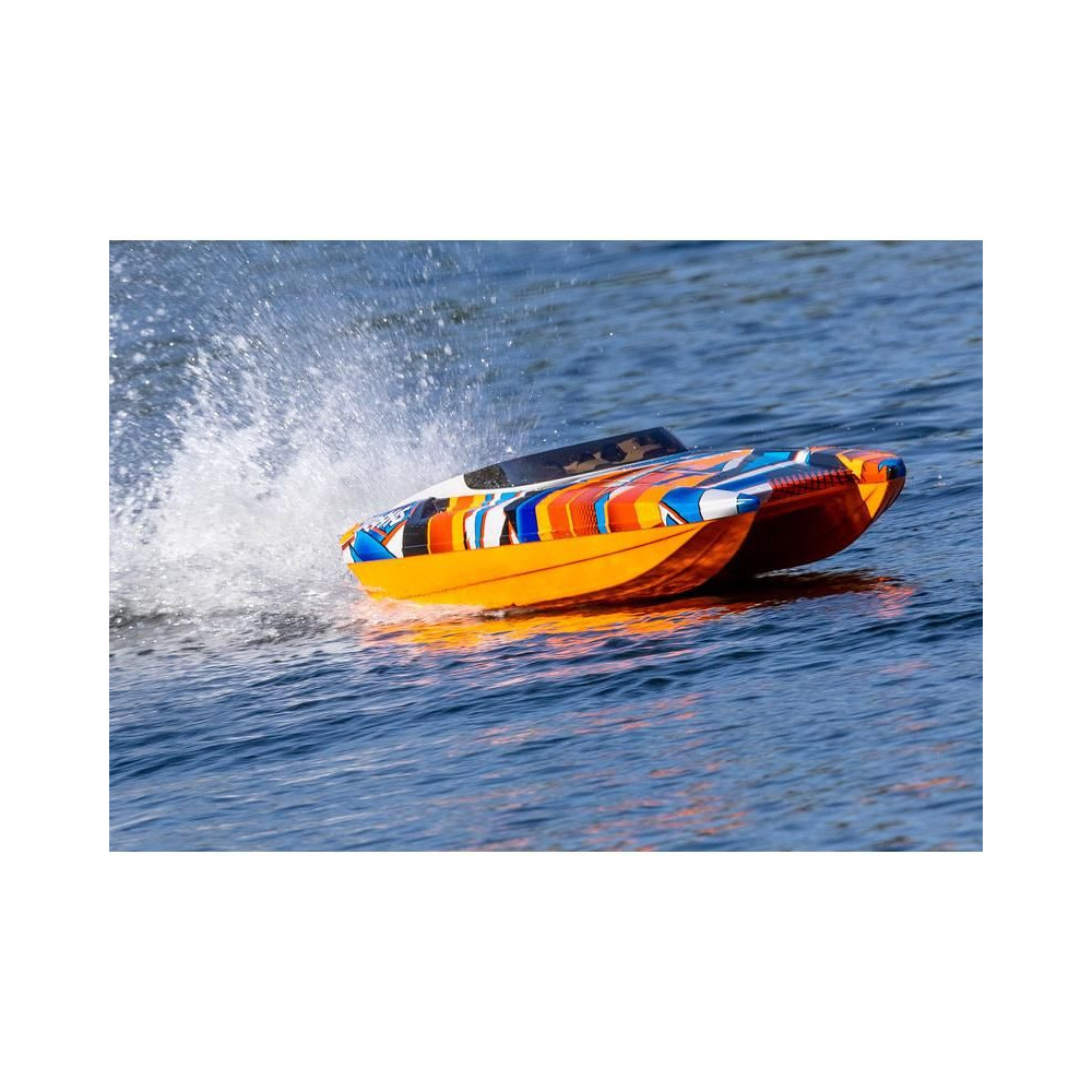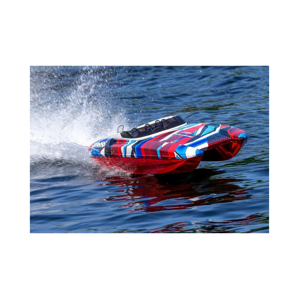 ADave's Custom Boats által gyártott valódi DCB M41 versenyhajó több mint 250 km/h sebességet ér el, és akár 1550 lóerős benzinmotor hajtja. A Traxxas készített neked egy távirányítható hajómodellt, ami nem fog csalódást okozni. A hajótest hossza 105 cm, természetesen van Traxxas TSM stabilizátor, Traxxas TQi RC kit és bevált hajtás. A beüzemeléshez mindössze a meghajtó akkumulátorokra és egy töltőre van szükséged.