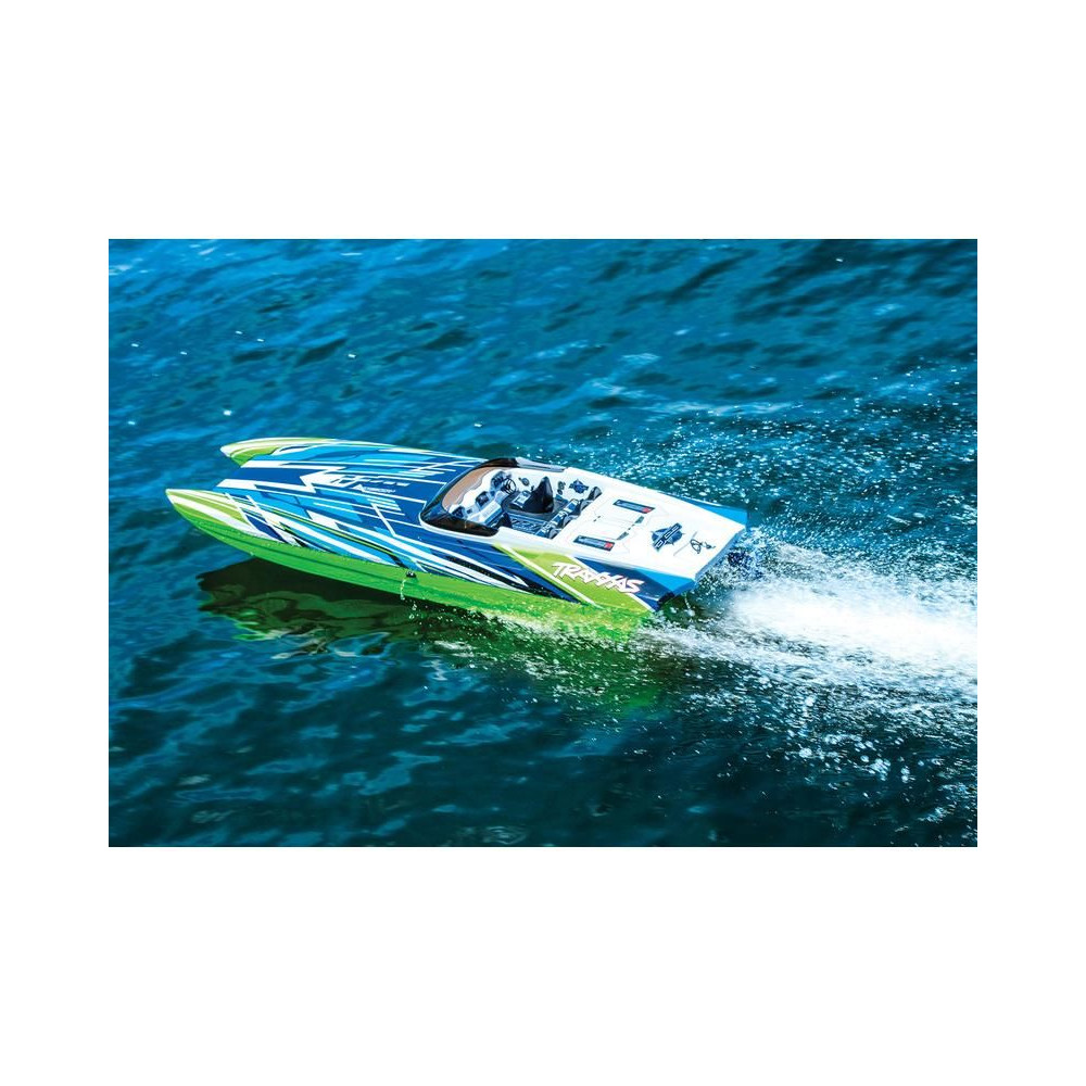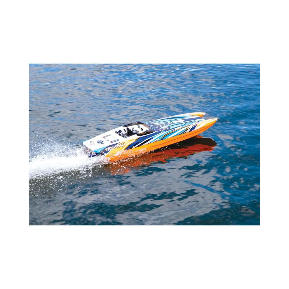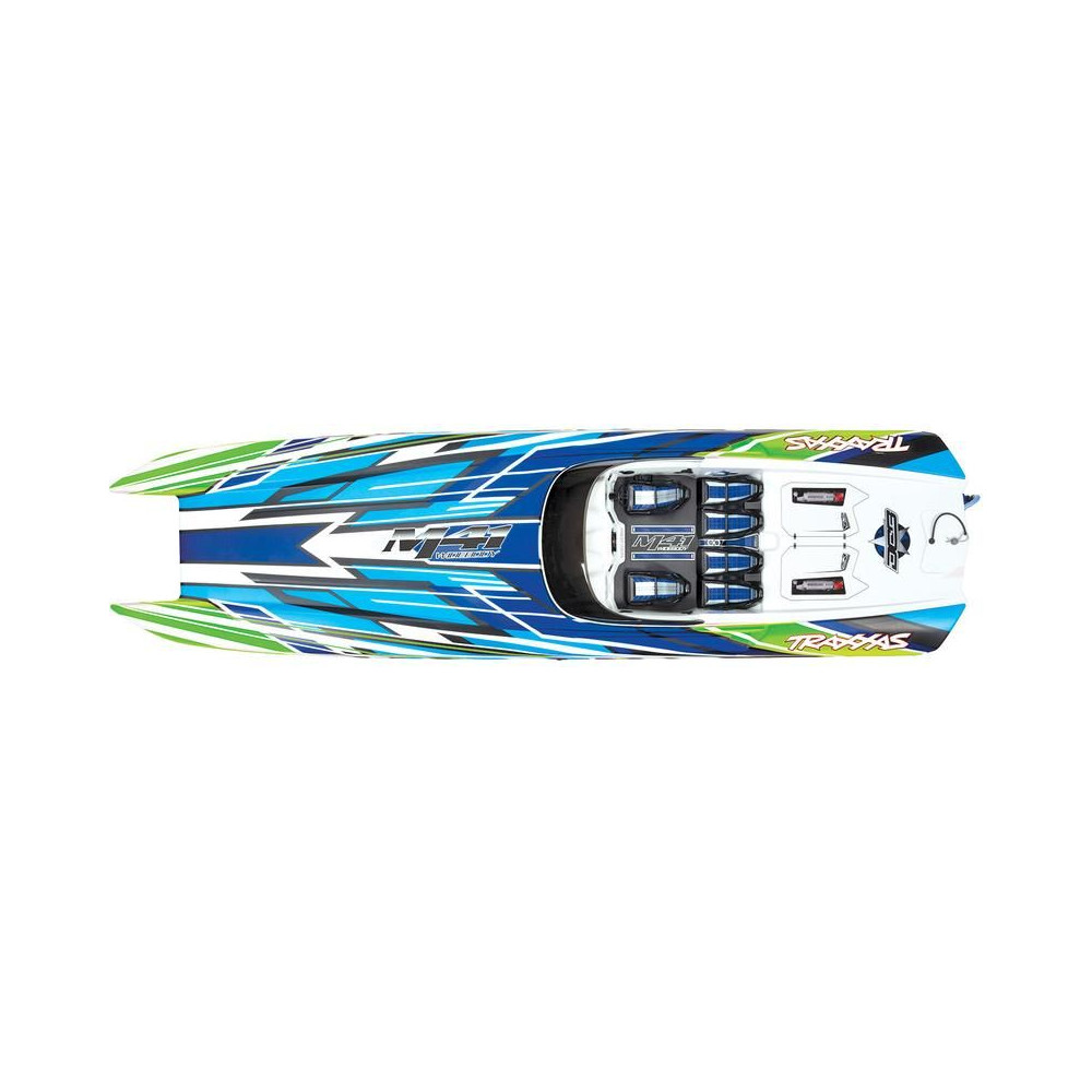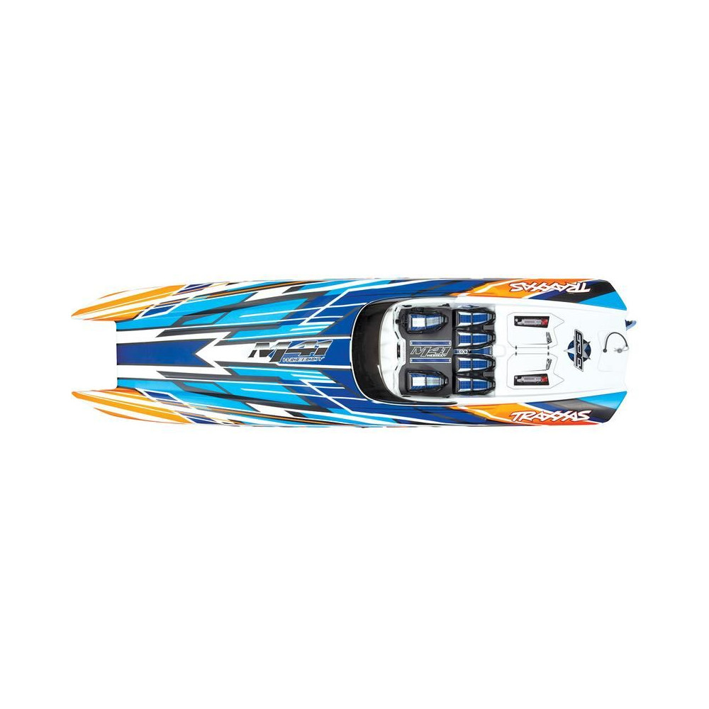 A nagy teljesítményű Traxxas DCB M41 Widebody RC távirányítós csónakmodell több mint 80 km/h sebességet ér el. A hajótest hossza 103 cm, TSM stabilizátor, TQi 2,4 GHz-es adó, erős Velineon 540 XL vízhűtéses váltóáramú motor és VXL-6s Marine BL vezérlő.