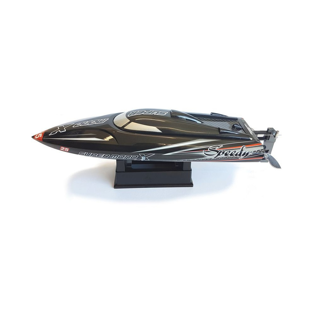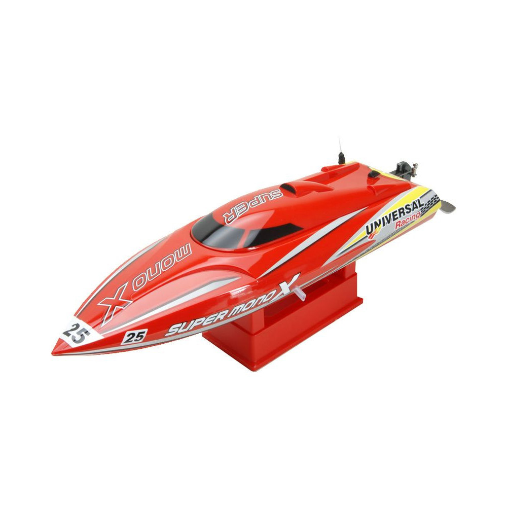 A nagy teljesítményű Super Mono X V2 gyorshajó 2812-2950kv AC motorral akár 45km / h sebességgel is haladhat, ami elég jó sebesség a vízen, megfizethető áron kap egy modellhajót, amely tartós ABS hajótesttel, teljesen telepített meghajtással és elektronikával rendelkezik 30A AC vezérlővel és 2,4 GHz-es kormánykerék-adóval. Mind a motor, mind a vezérlő vízhűtéses.