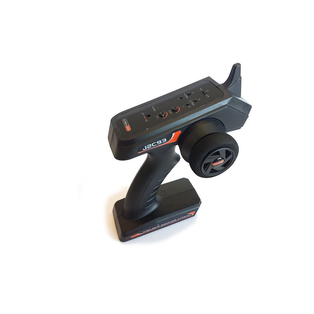 A modellt egy megbízható 2,4 GHz-es modulált RC kit vezérli. Az adó négy AA ceruzaelemmel működik.