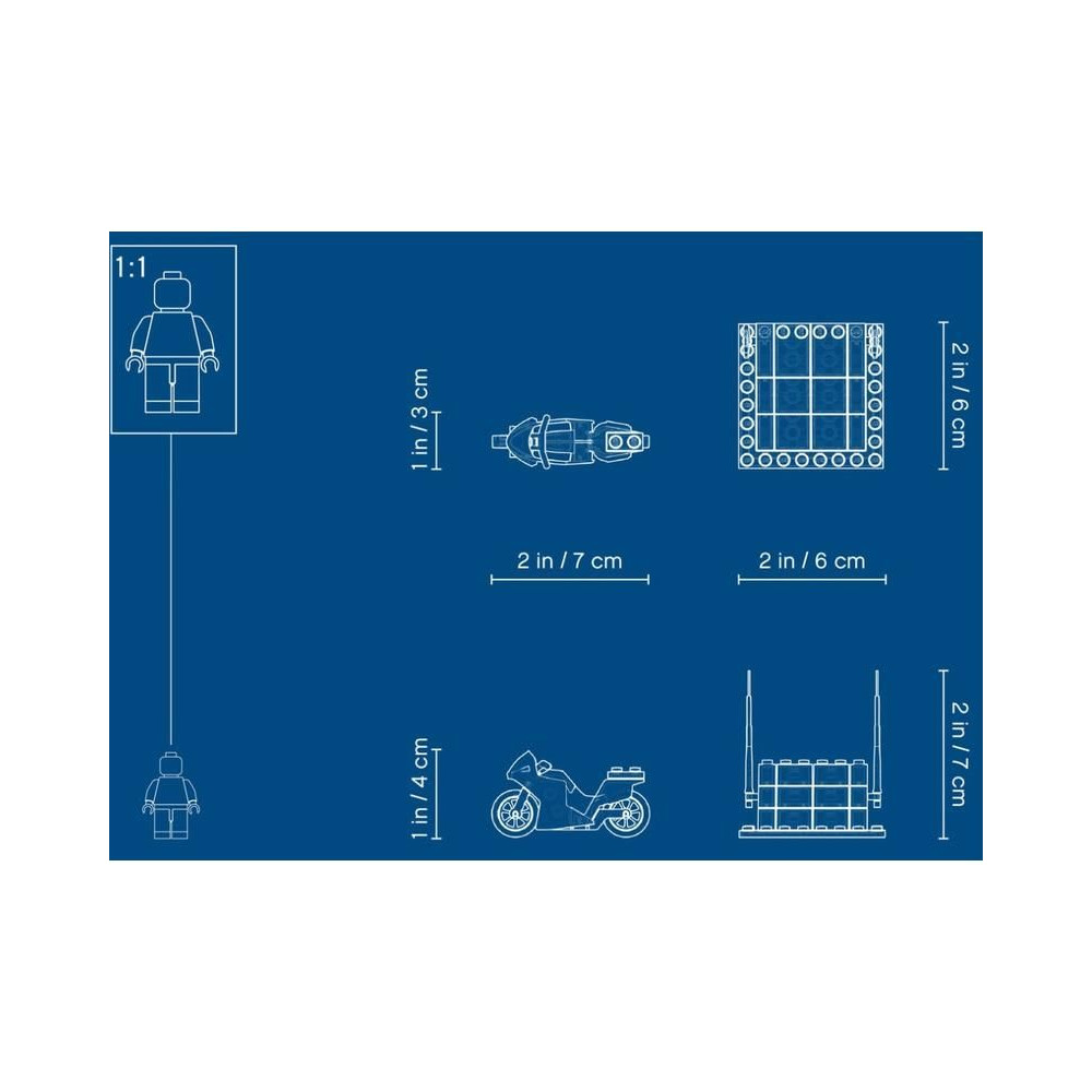 - A motorkerékpár tartalmaz egy ülést a minifigura számára. A rámpa két tűzlánggal rendelkezik.