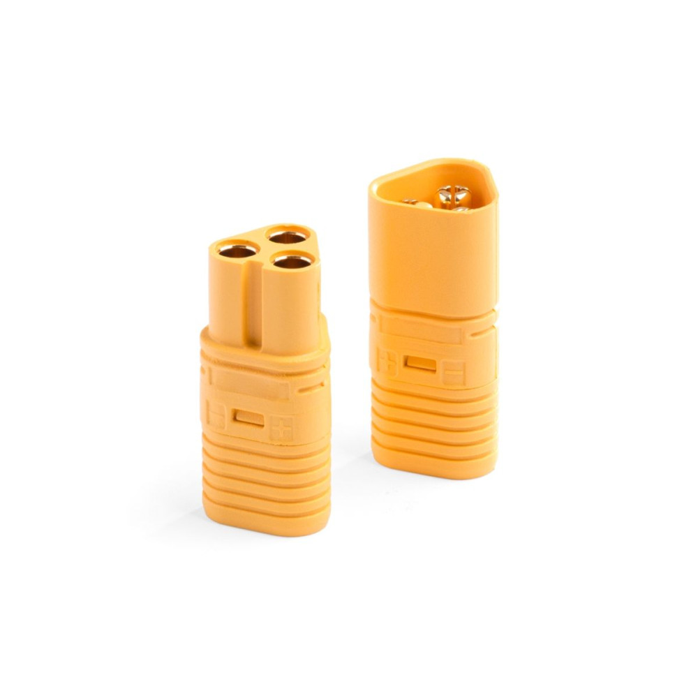 Háromtűs erősségi csatlakozó aranyozott érintkezőkkel, max. 60 A terhelhetőséggel, max. 3,3 mm2 (12AWG) keresztmetszetű kábelekhez. Átmeneti ellenállás 0,55 mOhm, max. 500 V. Ideális váltakozó áramú villanymotorok és vezérlők csatlakoztatására. 1 pár található a csomagban.