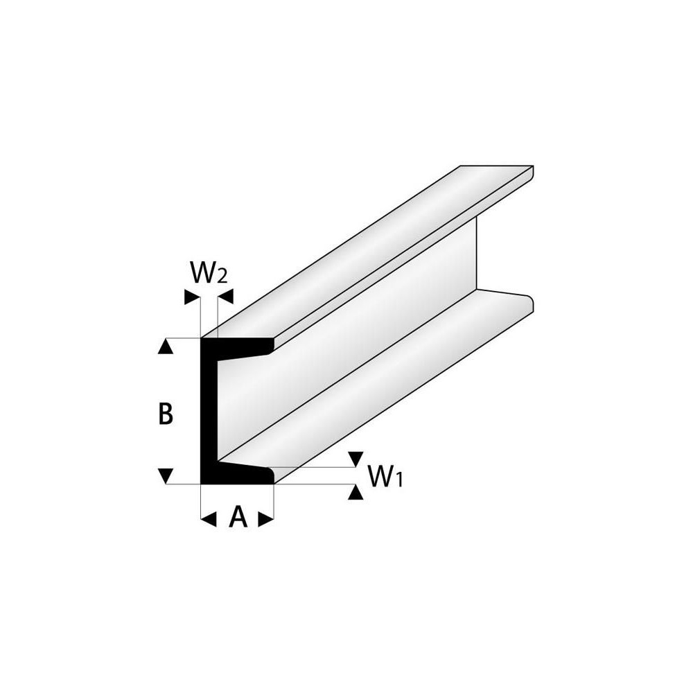 ASA műanyagból készült U-profil, nagy mechanikai szilárdsággal, stabilitással, UV-, víz- és olajállósággal. Az anyag könnyen feldolgozható, festésre alkalmas. Méretek: 2 x 4 x 1000 mm (A x B x L), 0,7 x 0,45 mm (W1 x W2), szín: fehér.