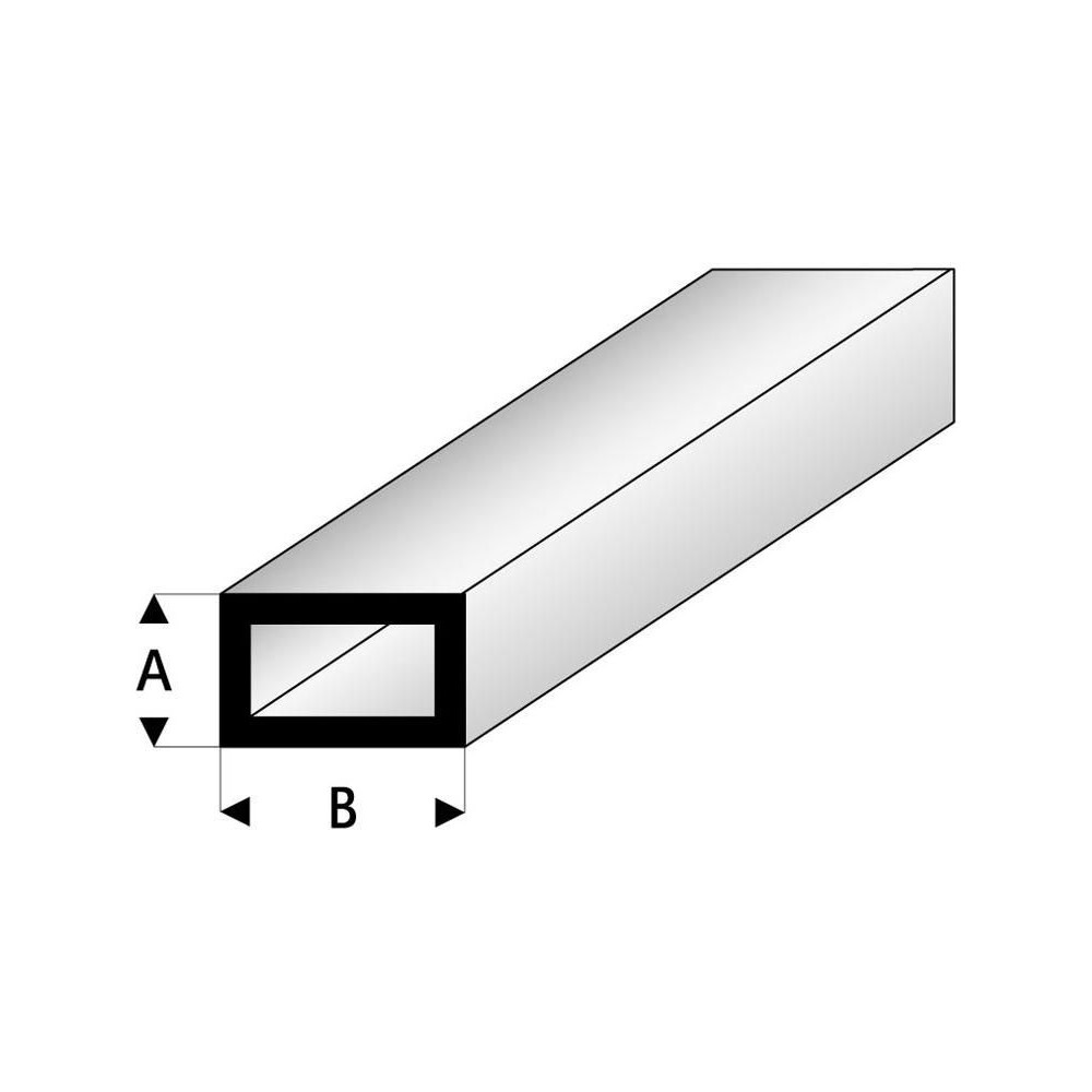 ASA műanyagból készült négyszögletes cső, nagy mechanikai szilárdsággal, stabilitással, UV-, víz- és olajállósággal. Az anyag könnyen feldolgozható, festésre alkalmas. Méretek: 4 x 8 x 330 mm (A x B x L), 5 db, szín: fehér.