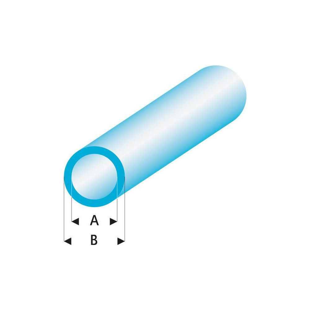 ASA műanyagból készült kerek cső, nagy mechanikai szilárdsággal, stabilitással, UV-, víz- és olajállósággal. Az anyag könnyen feldolgozható, festésre alkalmas. Méretek: 2 x 3 x 330 mm (A x B x L), 5 db, szín: átlátszó kék.