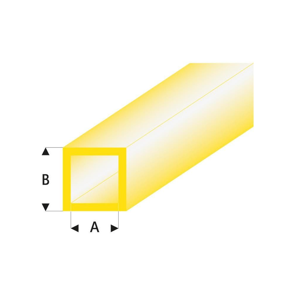 ASA műanyagból készült négyszögletes cső, nagy mechanikai szilárdsággal, stabilitással, UV-, víz- és olajállósággal. Az anyag könnyen feldolgozható, festésre alkalmas. Méretek: 5 x 6 x 330 mm (A x B x L), 5 db, szín: átlátszó sárga.