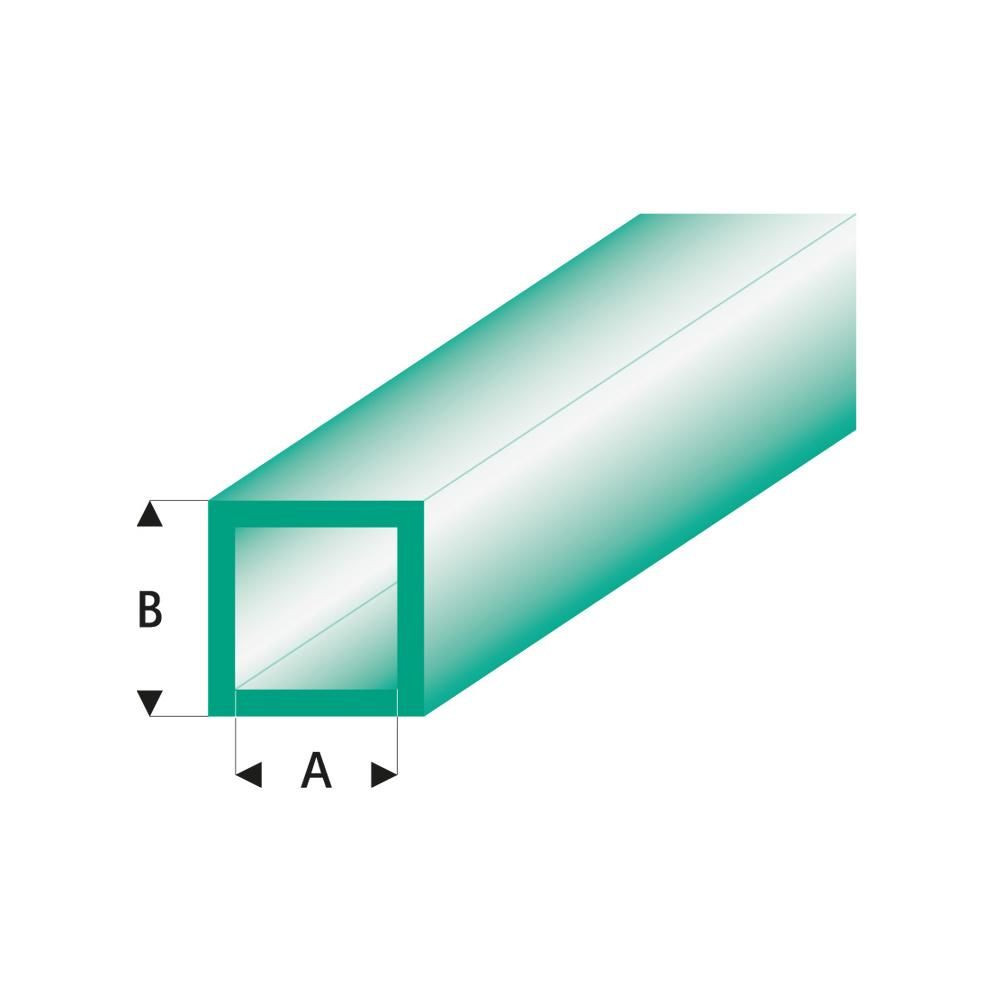 ASA műanyagból készült négyszögletes cső, nagy mechanikai szilárdsággal, stabilitással, UV-, víz- és olajállósággal. Az anyag könnyen feldolgozható, festésre alkalmas. Méretek: 3 x 4 x 330 mm (A x B x L), 5 db, szín: átlátszó zöld.