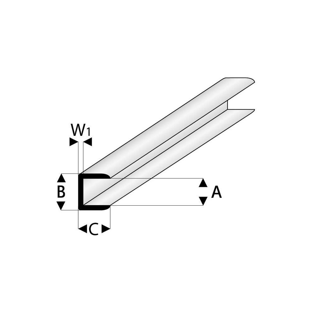 ASA műanyagból készült végprofil, nagy mechanikai szilárdsággal, stabilitással, UV-, víz- és olajállósággal. Az anyag könnyen feldolgozható, festésre alkalmas. Méretek: 1 x 1000 mm (A x L), 0,45 x 2 x 0,6 mm (B x C x W1), szín: fehér.