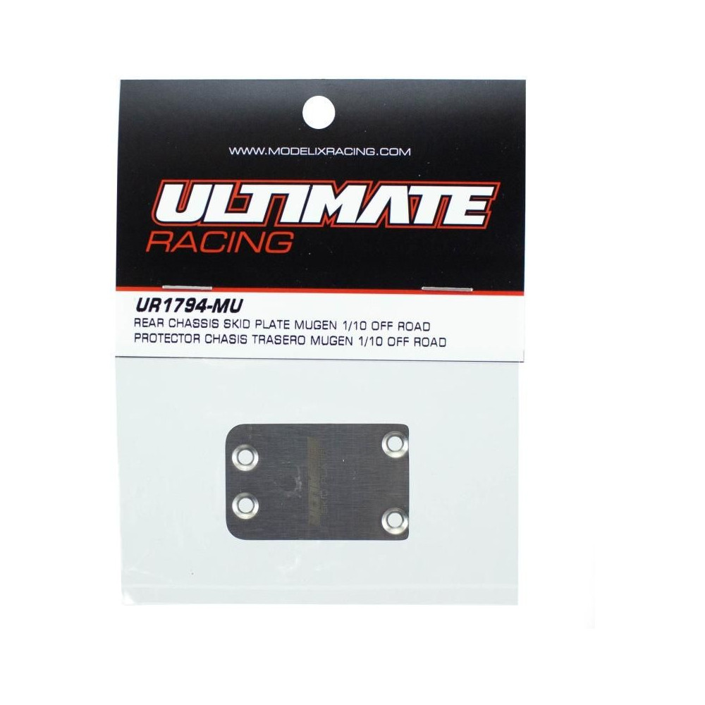 Ultimate Racing hátsó alvázvédő lemez a Mugen 1/8 Off Roadhoz. Az MSB1 platformhoz tervezett csúszótalpas lemez fokozott alvázvédelmet nyújt a kopással szemben. 0,5 mm-es rozsdamentes acélból készül, és az egyik legegyszerűbb módja járműve védelmének. A csomag egy ezüstszínű Ultimate csúszásgátló lemezt tartalmaz lézergravírozással.