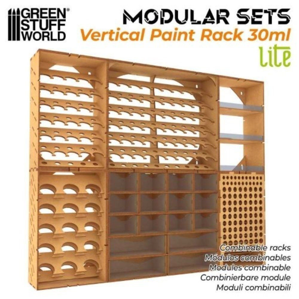 Moduláris festőállvány kiváló minőségű MDF fából. Ezen modulok közül több vízszintesen és függőlegesen is kombinálható, növelve a kapacitásukat. Szerelés nélkül érkezik, de az összeszerelése nagyon egyszerű. Ha meg szeretnéd erősíteni, akkor a szokásos fehér PVA ragasztó (faragasztó) használatát javasoljuk.