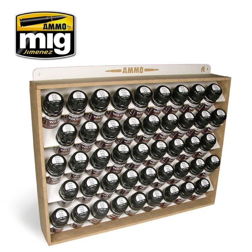 A polcok úgy vannak optimalizálva, hogy 45 db 35 ml-es üveget tárolhassanak a lehető legkisebb helyen. Az üvegek ferdén vannak tárolva, ami minimalizálja a méretüket, és lehetővé teszi, hogy egy pillantással megtaláljuk a kívánt színeket. Méretek 40 x 30 x 6,5 cm. Asztalra helyezhető vagy falra akasztható. Könnyű összeszerelés néhány perc alatt. Fehér ragasztót igényel, amely nem tartozék.