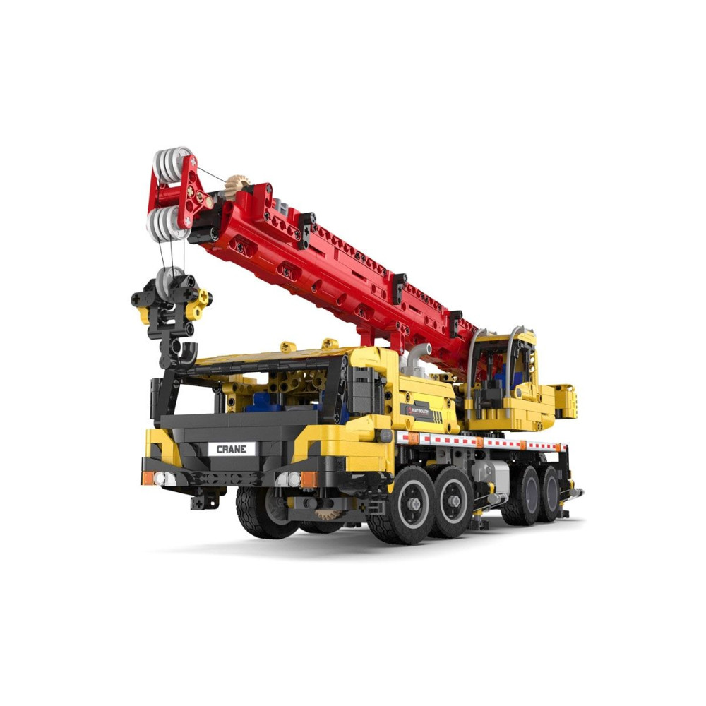Ez a lenyűgöző, teljesen funkcionális, dizájnos mobil darumodell nagyfokú játszhatóságot biztosít, négy kézi vezérlővel, amelyek 360°-os forgást, 70 cm-es horogkötél kihúzást/nyújtást vagy 50°-os karemelést biztosítanak. Ezenkívül a funkcionális oldalsó stabilizátorok rögzítik a darut, míg a darukar további 34 cm-t tud kinyúlni. A készletet elektromos tápegységgel lehet ellátni, és ezután minden távirányítóval működtethető.