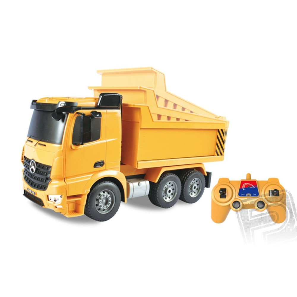 Mercedes-Benz Arocs teherautó modellje 1:26 méretarányban. Előre és hátramenet, balra és jobbra kanyarodás, a karosszéria emelése és leengedése, valamint egyéb funkciók. Hatótávolság 20 m, haladási sebesség 3,6 km/h. Eredeti akkumulátor és töltő tartozék.