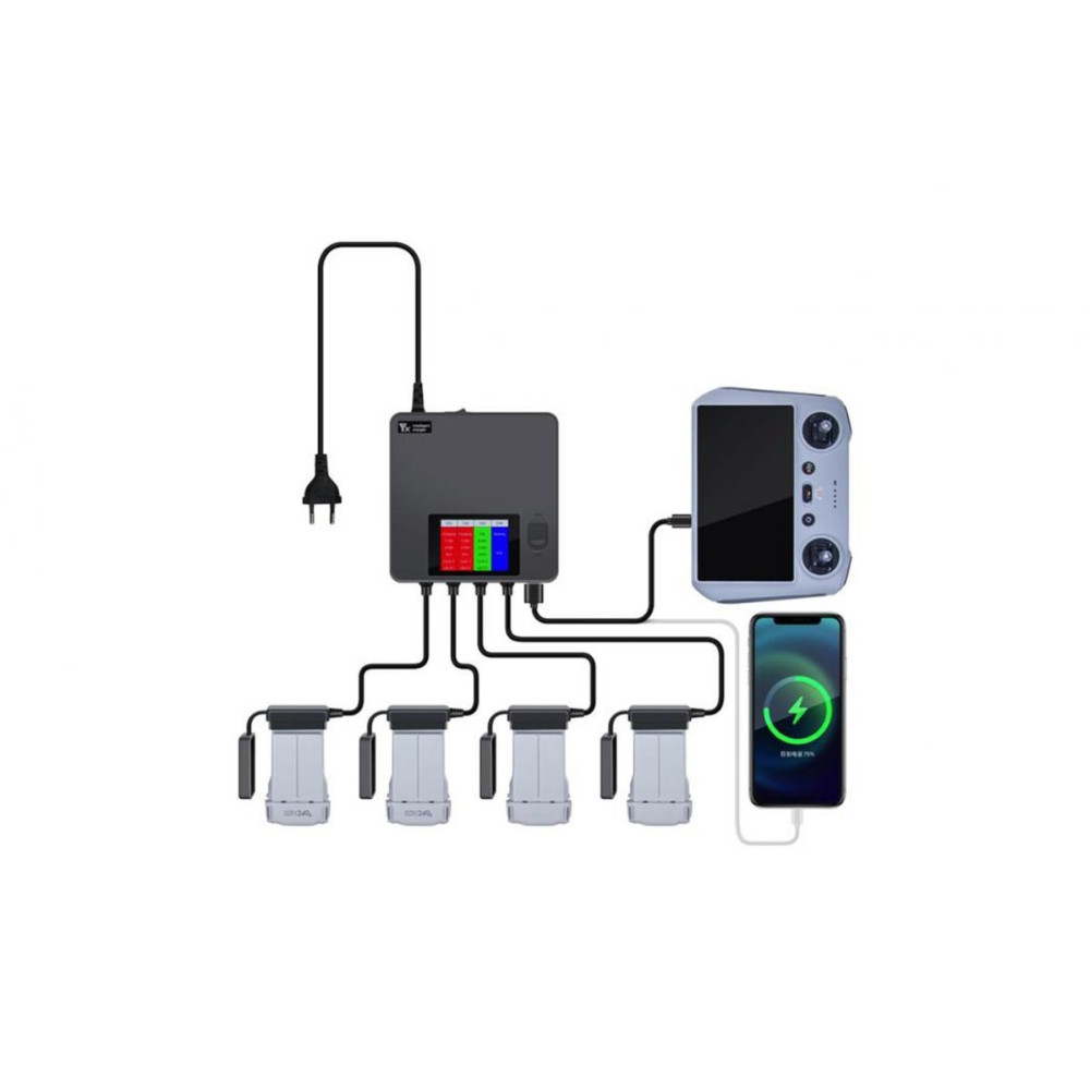 633gSize: 13.3*13.3*2.8cmInput: kimenet: 8.5V/2.0A (Max.)*4USB kimenet: DC 12-16V 7AOutput: 8.5V/2.0A (Max.)*4USB kimenet: DC 12-16V 7 töltési idő: DC 5V 3AC: Tulajdonságok:LCD képernyővel, 60%-os tárolási móddal és kapcsolóvalKompatibilis a DJI MINI 4 Pro / MINI 3 Pro / MINI 3 akkumulátorokkal:-Az akkumulátorok töltési ideje: kb. 70 perc 4 x 2453mAh akkumulátorral; kb. 110 perc 4 x 3850mAh akkumulátorral