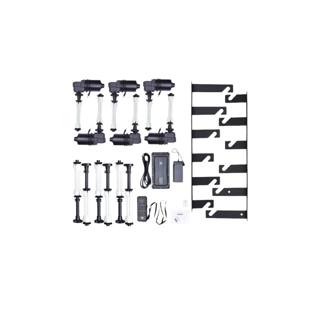 A csomag tartalma: 2 x 6x háttérhorog 6 x motoros elektromos görgőkészlet 1 x jelvevő 1 x vezeték nélküli távirányító
