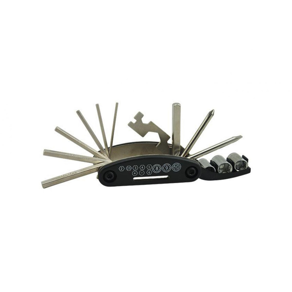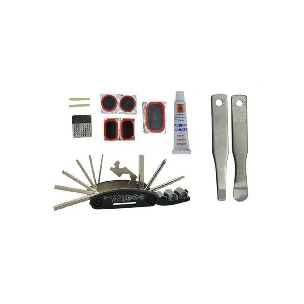 A 16IN1 hardver szerszámokkalRagasztókkal/kerékbilincsekkel/tapaszokkalTárolótáska Méret: 110mm*80mmSúly: 290g