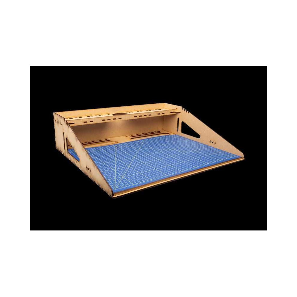 Munkaállomás modellezők számára. Méret: 46 x 39 x 12 cm. A3-as vágóalátétet tartalmaz.