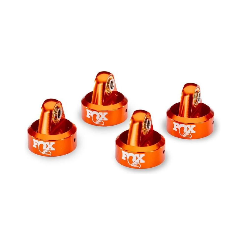 Négy darabos Traxxas GTR alumínium lengéscsillapító fej készlet narancssárga eloxálással és lézergravírozott FOX logóval. A precízen megmunkált lengéscsillapító fejek szilárdan tartanak, fokozott tartósságot és csodálatos megjelenést biztosítanak. A forgócsapágyak kizárólag bronz perselyekben vannak elhelyezve, ami lehetővé teszi a lengéscsillapítók szabad mozgását és csökkenti az alkatrészek terhelését agresszív vezetési élmény során.