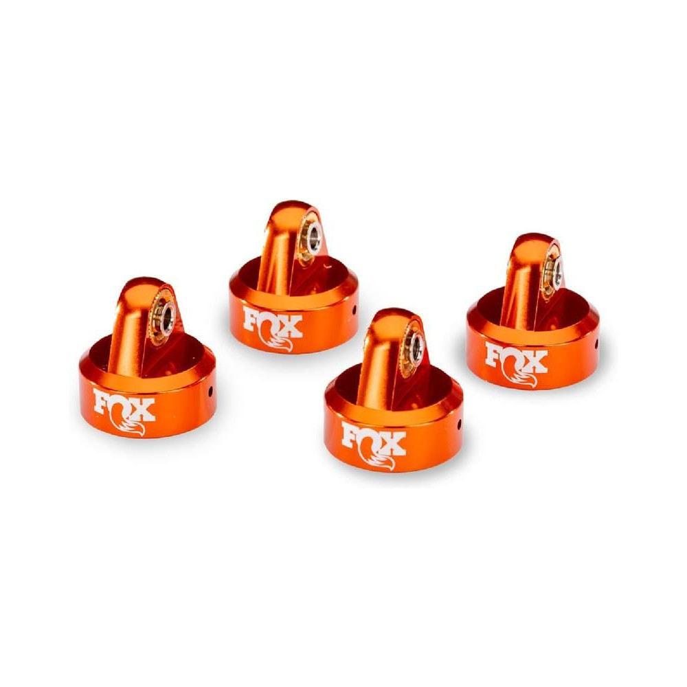Négy darabos Traxxas GTR alumínium lengéscsillapító fej készlet narancssárga eloxálással és lézergravírozott FOX logóval. A precízen megmunkált lengéscsillapító fejek szilárdan tartanak, fokozott tartósságot és csodálatos megjelenést biztosítanak. A csapszeggolyók kizárólag bronz tokban vannak tárolva.