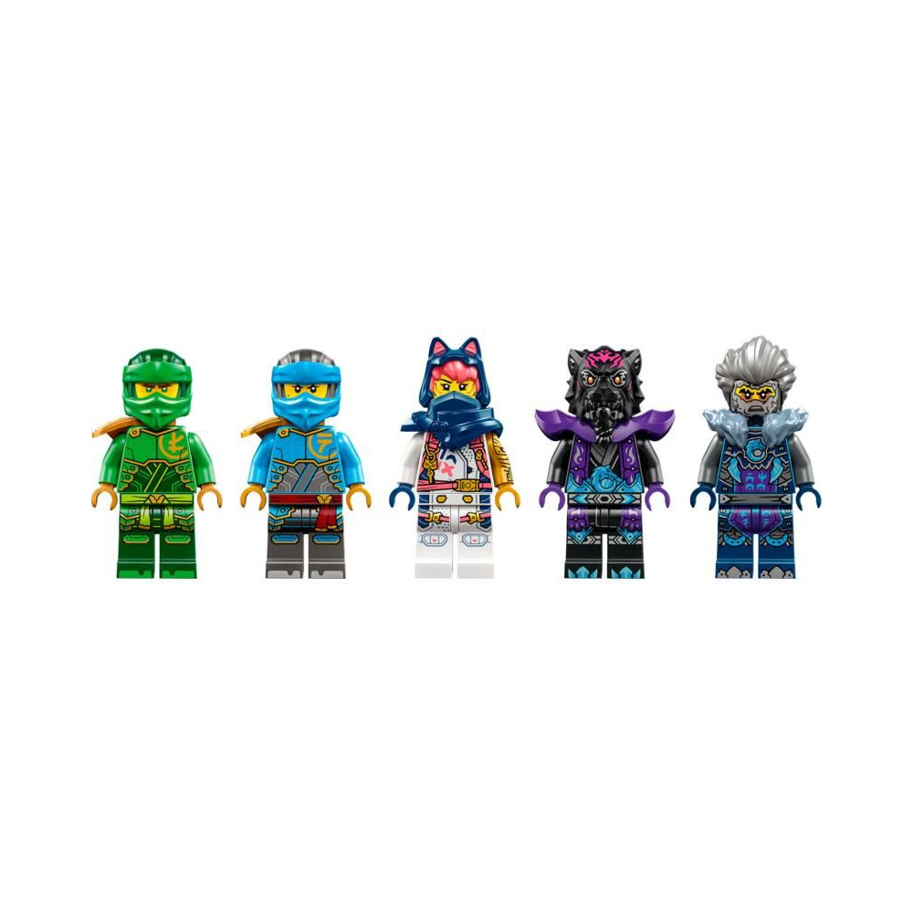- 5 LEGO® NINJAGO® minifigura - A gyerekek játszhatnak harcias nindzsa harcosokat Lloyd, Sora és Nya katanával, Lord Ras ellen a kalapáccsal és Cinder ellen a karddal.