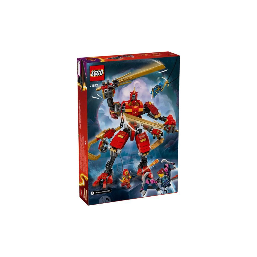 A Kai nindzsa robotruhával (71812) a 9 éves és annál idősebb gyerekek felidézhetik a NINJAGO® Sárkányfelkelés című TV-sorozat 2. évadában az Árnyak erdejében zajló csatákat. A készlet tartalmaz egy látványos Kai piros nindzsa ruhát, amely 2 kampót tartalmaz a hátán, amelyekkel gyerekjáték a mászás (és kampóként is használhatóak a modell kiállításához, ha a gyerekek befejezték a játékot), mozgatható karokat, lábakat, törzset, fejet és lábakat, 2 nagy katanát és egy pilótafülkét a minifigura számára.