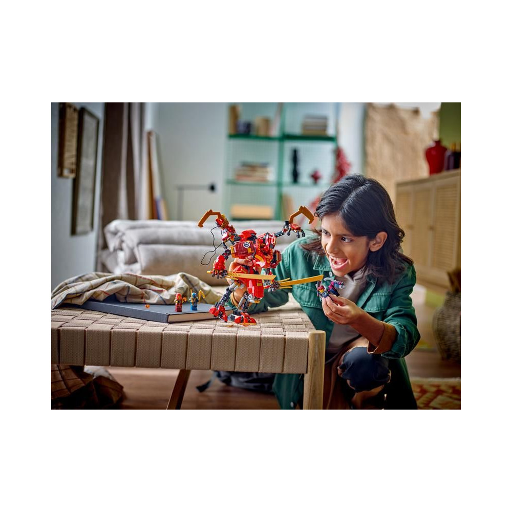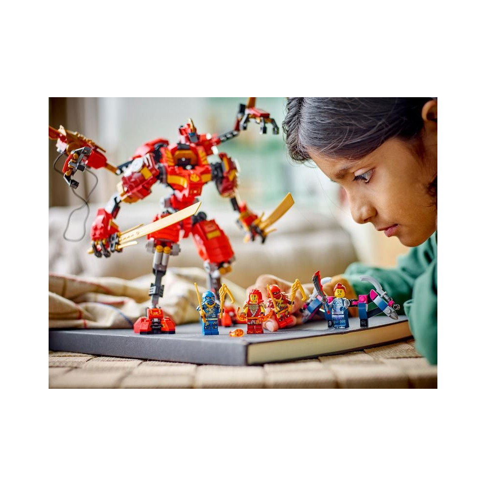A 9 éves és annál idősebb gyerekek felidézik a NINJAGO® TV-sorozat 2. évadának csatáit a Sárkányfelkelés című sorozatból Kai nindzsa robotruhájával.