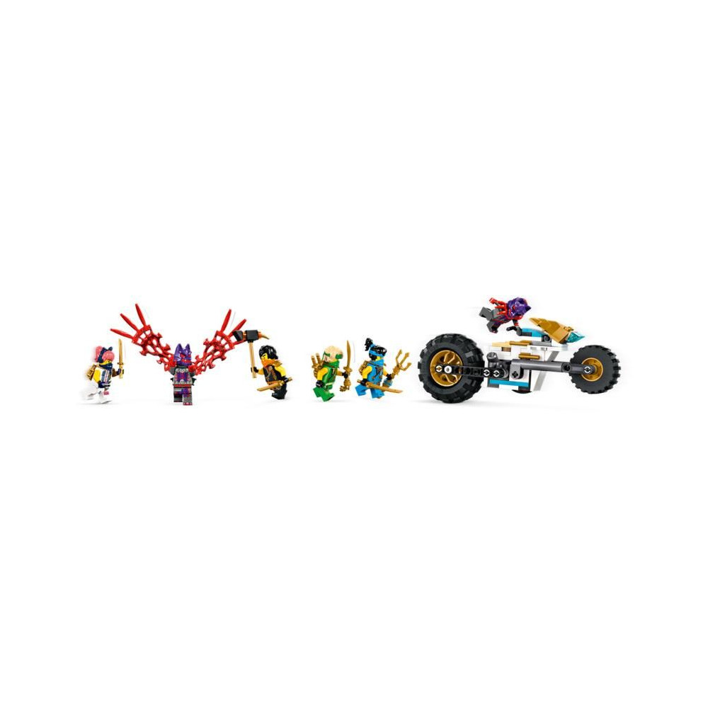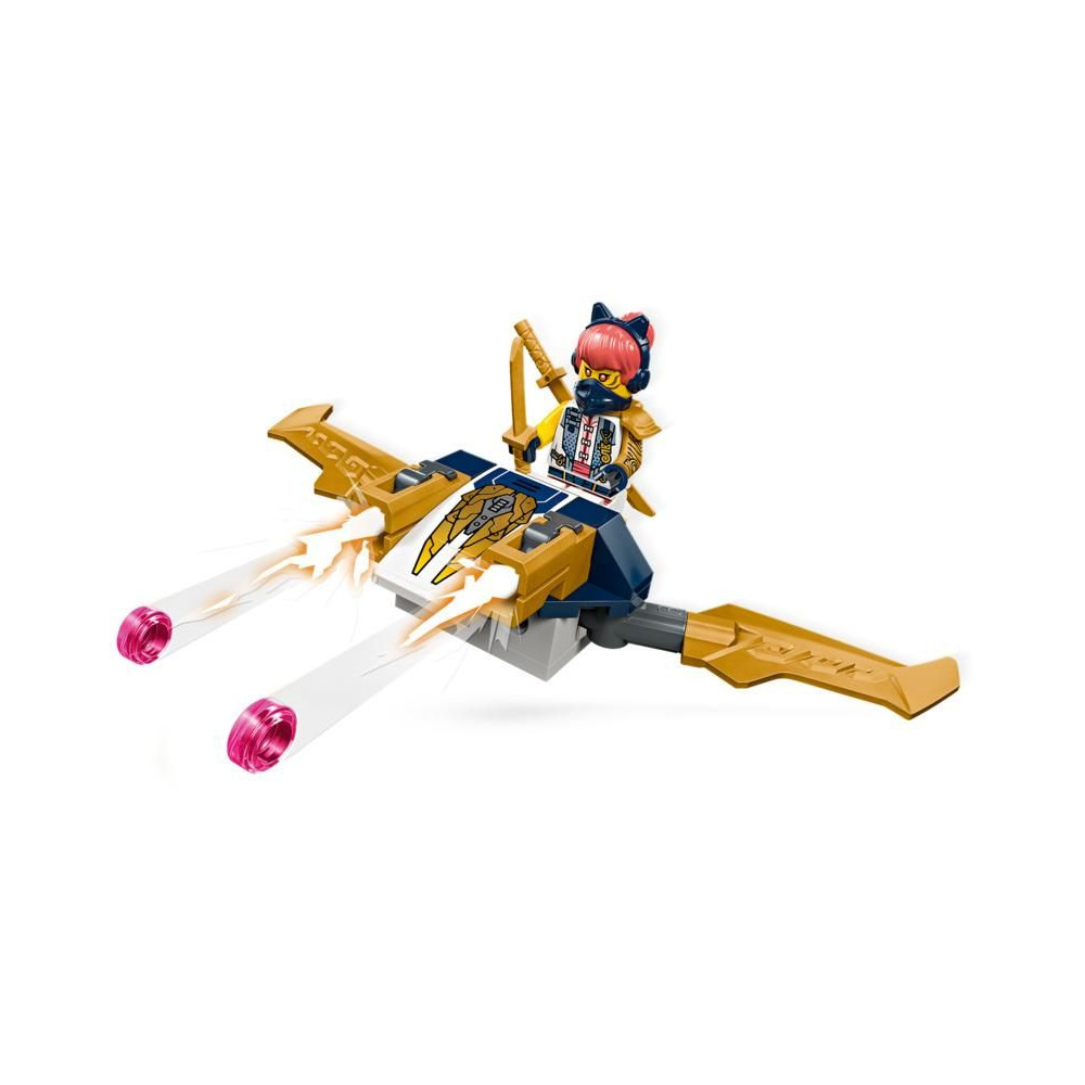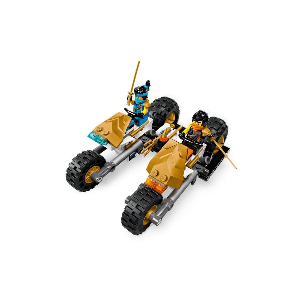 - Levehető Ninja járművek - A nagy NINJAGO® jármű 4 kisebb járműre osztható: Sora siklórepülője 2 katapultálóval, Lloyd terepjárója, valamint Cole és Nya motorkerékpárjai.