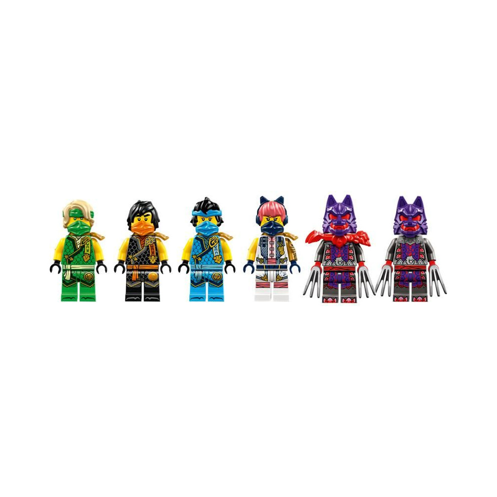 - 6 NINJAGO® minifigura - A NINJAGO® készlet Sora, Lloyd, Nya és Cole, egy farkasmaszkos harcos és egy farkasmaszkos tábornokot tartalmaz.