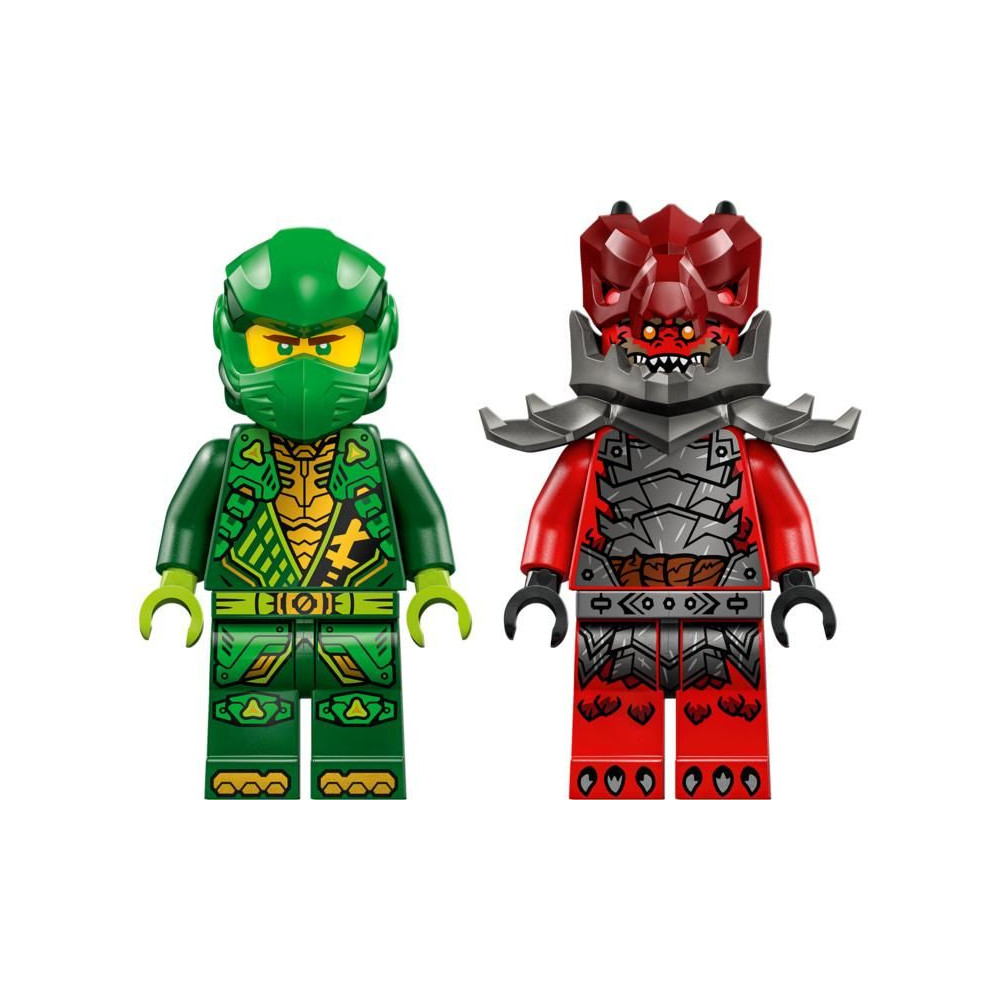 A készlet 2 NINJAGO minifigurát tartalmaz: Lloydot 2 arany katanával és egy lázadó sárkány harcost karddal, amelyekkel a gyerekek izgalmas csatákra emlékezhetnek. A készlet 2 világító elemet is tartalmaz, amelyekkel egy kisebb akadálypályát lehet létrehozni egy versenyautó számára.