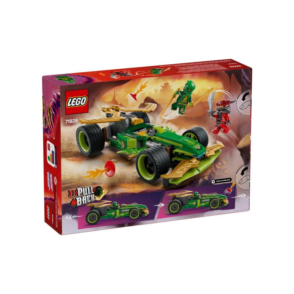 Örvezd el a kis nindzsákat az első NINJAGO® építőkészlettel, mely egy felhúzós motorral ellátott autót tartalmaz! A 7 éves kortól a fiúk és a lányok emlékezni fognak a NINJAGO Sárkány felemelkedése sorozat 3. évadának szupergyors akciójeleneteire Lloyd felhúzható motoros versenyautójával (71828). Húzd hátra a játékautót, engedd el, és nézd, ahogy előre száguld! Az elegáns versenyautó 4 gumiabronccsal, egy minifigura számára kialakított vezetőfülkével és zöld villámokkal díszített.