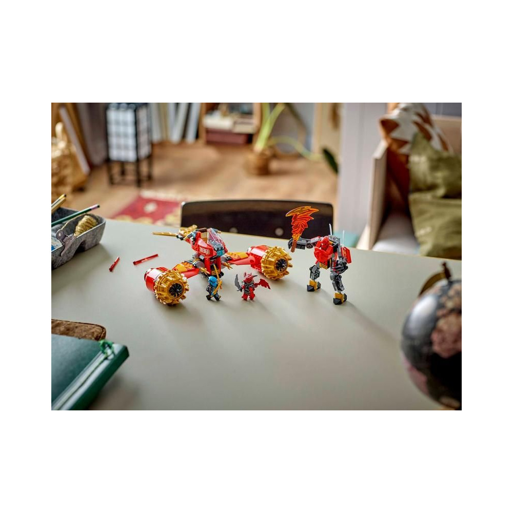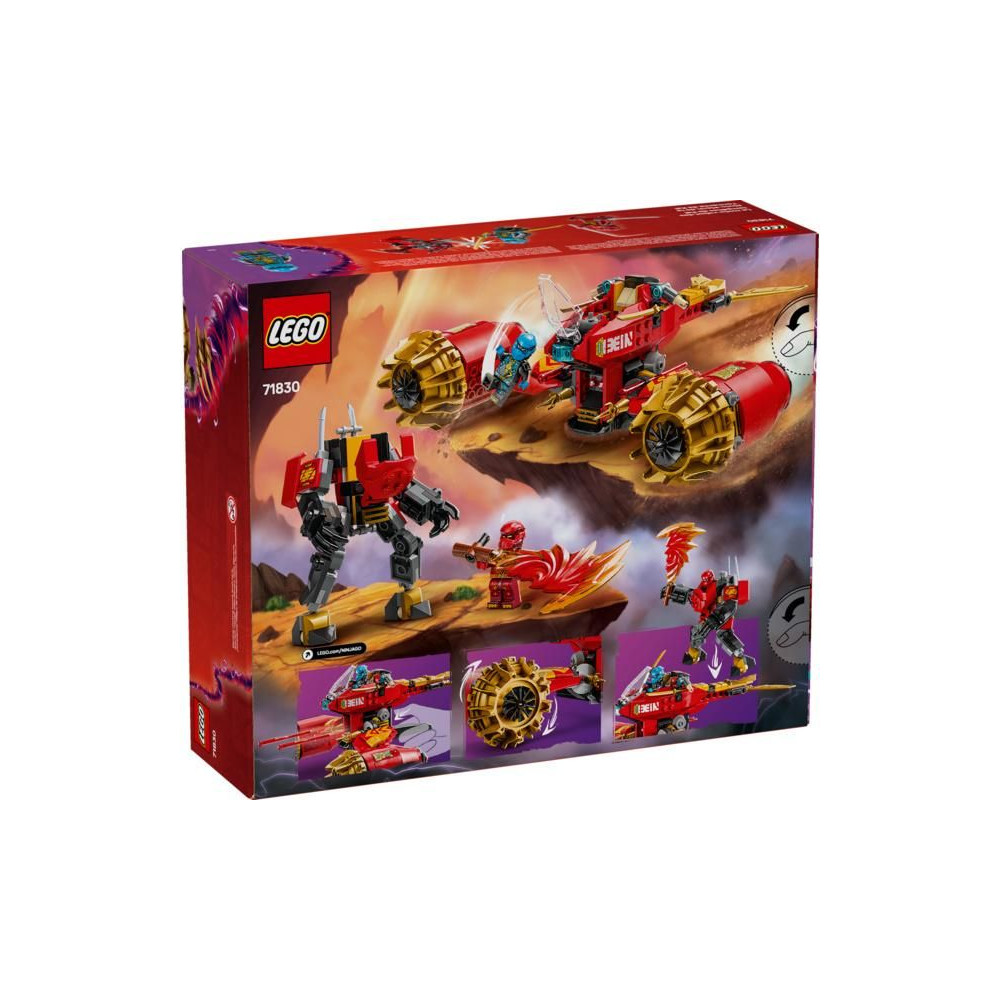 A Kai viharlovasa és robotja (71830) kombinált nindzsa építőkészlettel a 7 éves kortól a fiúk és a lányok egyaránt emlékezni fognak a NINJAGO® Sárkányfelkelés tévésorozat 3. évadának izgalmas jeleneteire. A gyerekek játszhatnak a nagyméretű akciókészlettel, majd 2 kisebb járművé szedhetik: Kai robotjává mozgatható fejjel, karokkal és lábakkal, pilótafülkével és nagy viharpengével, valamint Nya repülő motorkerékpárjává pilótafülkével, mozgatható szárnyakkal és 2 rugós kilövővel.