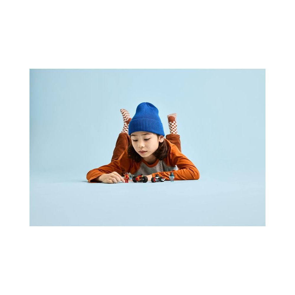 - További nindzsa kalandok – Nézd meg a többi LEGO® NINJAGO® készletet is (külön kaphatók) még több mókáért Kai-jal és motorversenyzéssel.