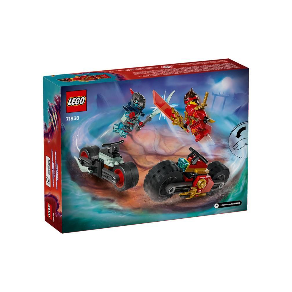 A Kai és Motorversenyek (71838) építőkészlettel a 6 éves vagy annál idősebb fiúk és lányok emlékezni fognak a NINJAGO® Sárkánylázadás TV sorozat 3. évadának akciójeleneteire. Ez az akciódús építőkészlet 2 mozgó kerekű ninja motort tartalmaz: Kai versenymotorját, amelyet 2 tőr díszít, és a Fantom Sárkány Felderítő démonmotorját.