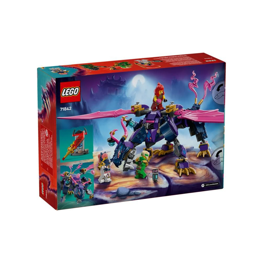 A LEGO® NINJAGO® (71842) Rontu – A sárkányok ura építőkészlettel a 7 éves és annál idősebb ninja rajongók emlékezni fognak a NINJAGO tévésorozat, a Sárkány felemelkedése 3. évadának akciójeleneteire. Ez a gyerekeknek szánt játék egy mozgatható farkú, lábú, szárnyú, fejű és állkapcsú sárkánymodellt, a hátán 2 pozíciót találsz egy minifigura elhelyezéséhez, és minden szárny alatt egy-egy kilövőt.
