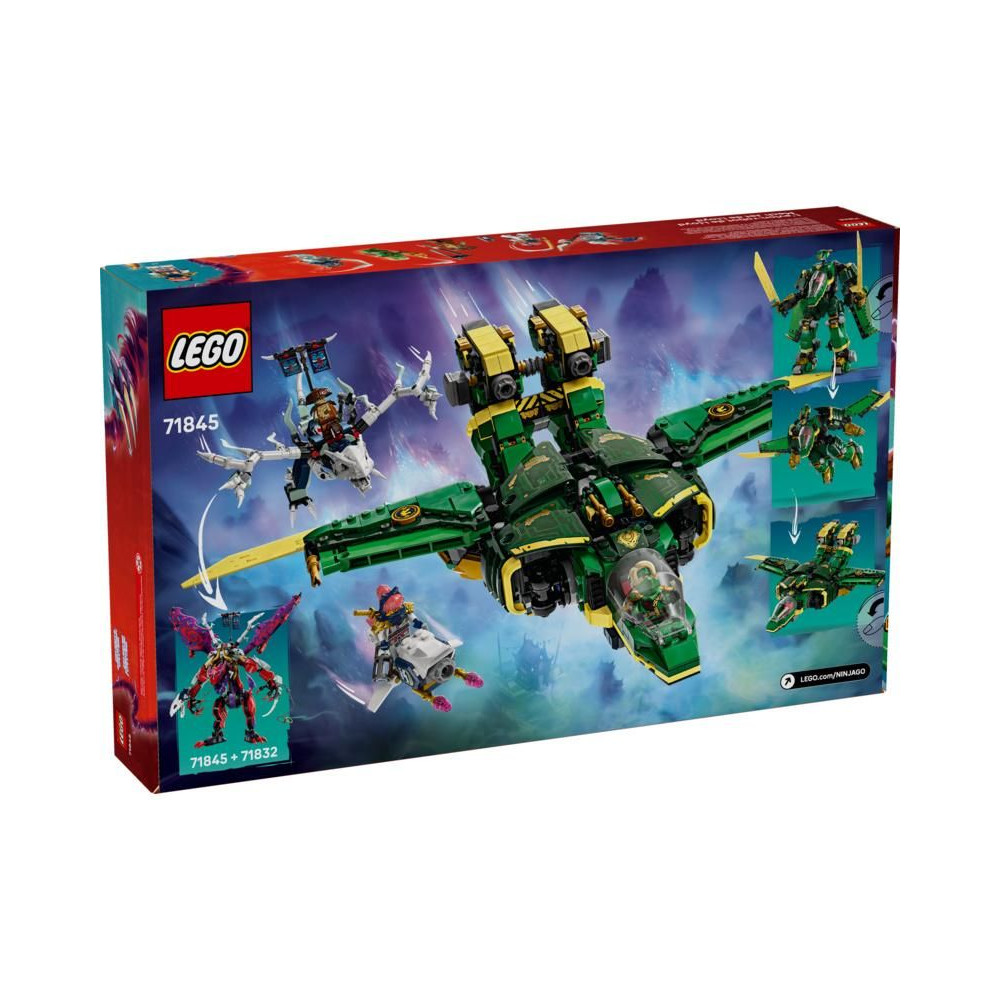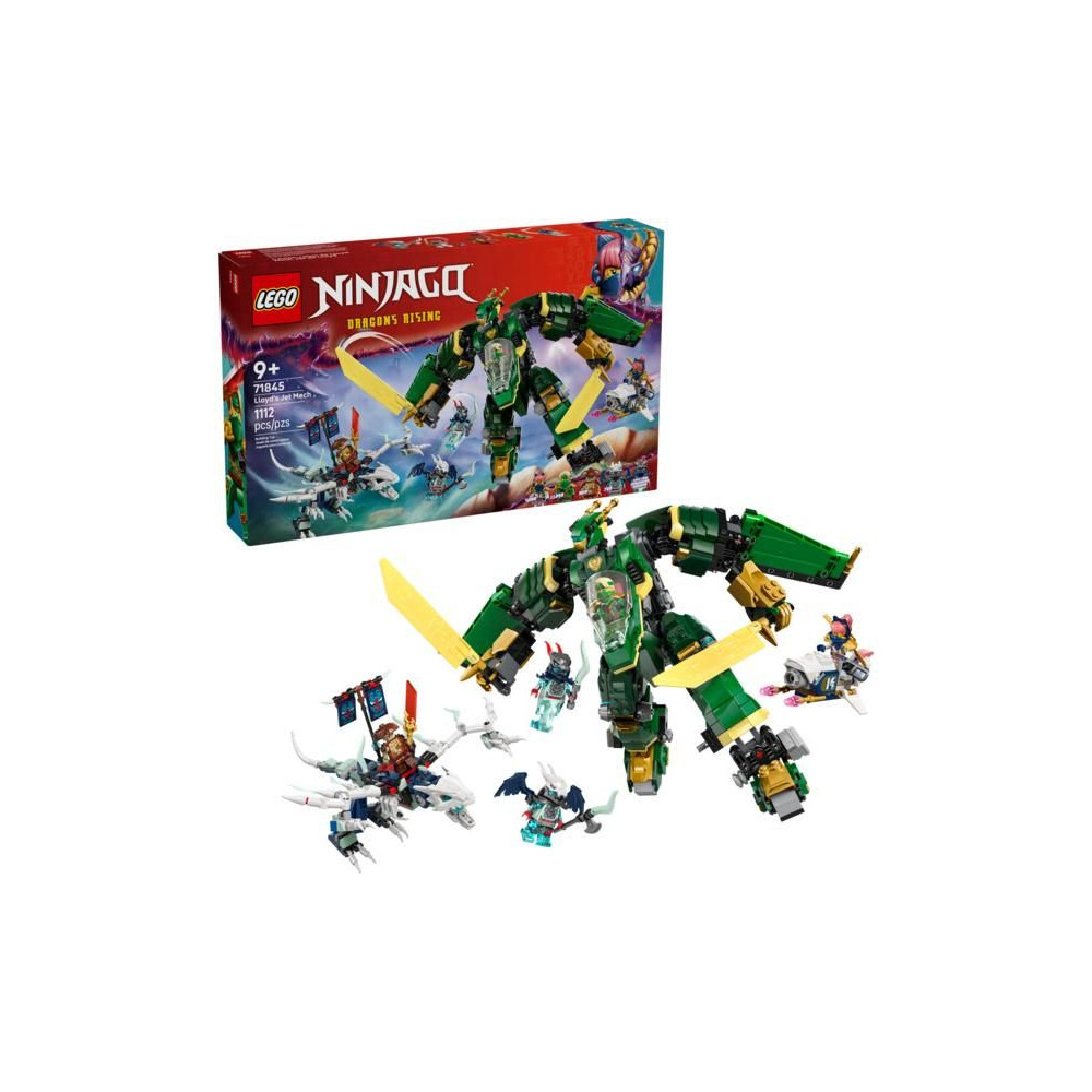 A 9 éves vagy annál idősebb gyermekek élvezni fogják a nindzsa kalandokat, a levegőben és a földön vívott csatákat a Lloyd robotrepülőgépe (71845) építőkészlettel, és felidézhetik a NINJAGO® Sárkány felemelkedése tévésorozat 3. évadának akciójeleneteit.