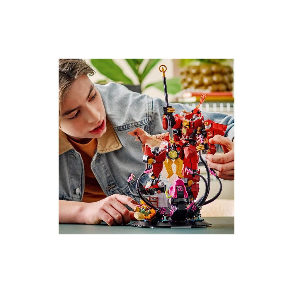 - Interaktív modell – A nindzsa rajongók levehetik a modellt az alapról, és eljátszhatják a NINJAGO® Legends Monstrosity sorozat történeteit egy mozgó robottal és egy mozgatható csápokkal rendelkező szörnnyel.