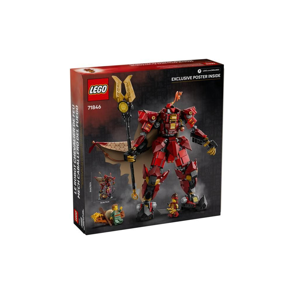 A 14 éves vagy annál idősebb NINJAGO® rajongók bővíthetik LEGO® NINJAGO modellek gyűjteményét a lenyűgöző és kidolgozott Tűzlovag Robot (71846) építőkészlettel. A készlet egy drámai jelenetet tartalmaz, amelyben egy köpenyes robot lándzsával a kezében harcol egy tengerből előbukkanó ősi szörnnyel. A modell nagyszerűen fog mutatni a teremben található kiállítási standon.
