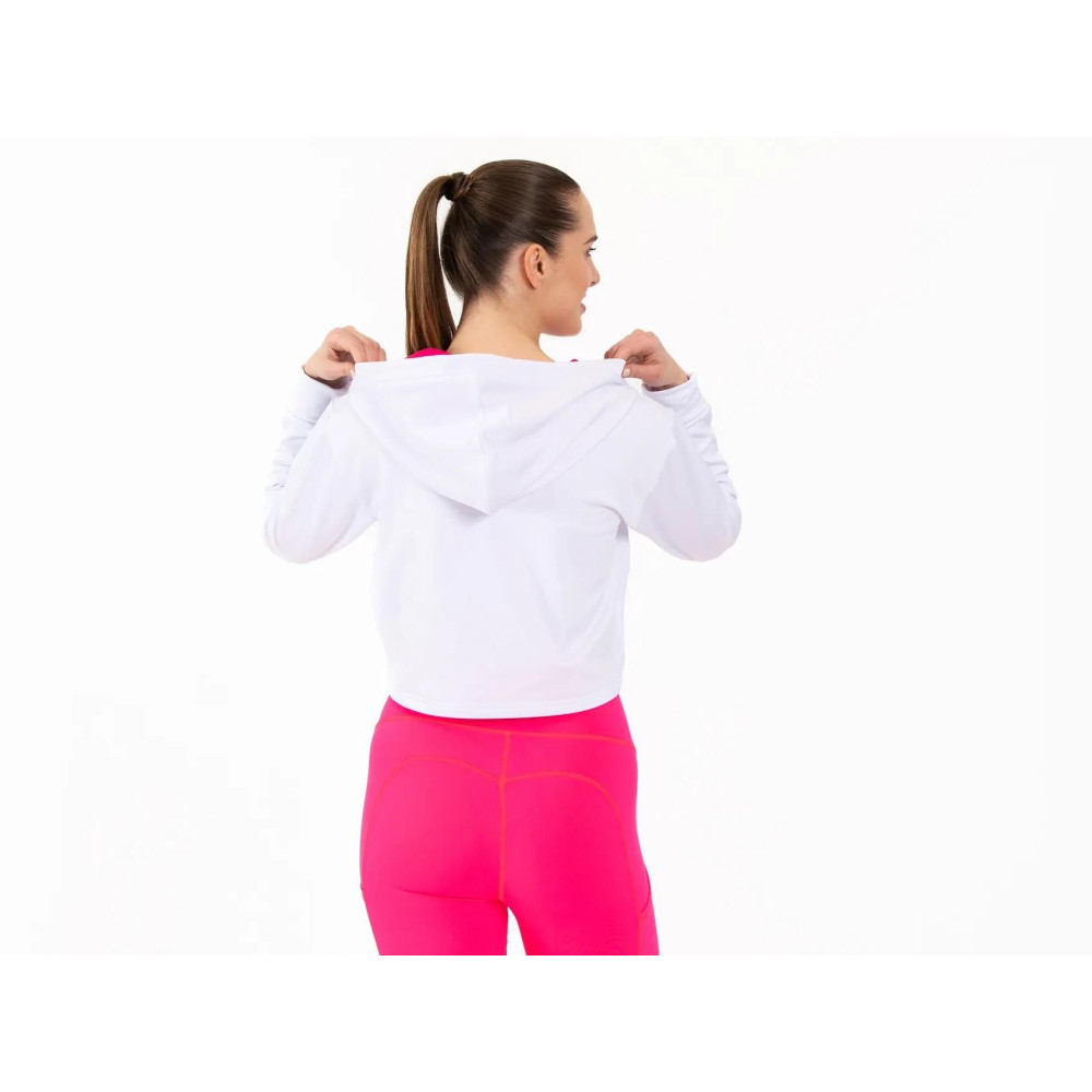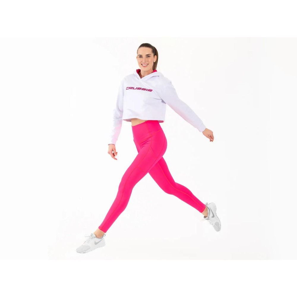 A CRUSSIS FITNESS kollekció kényelmes crop top kapucnis pulóvere puha és kényelmes anyagával elbűvöl. Nagyon kellemes viselete még hidegebb időben is remek érzést nyújt, és olyan érzésed lesz, mintha egy pehelypaplanban lennél.